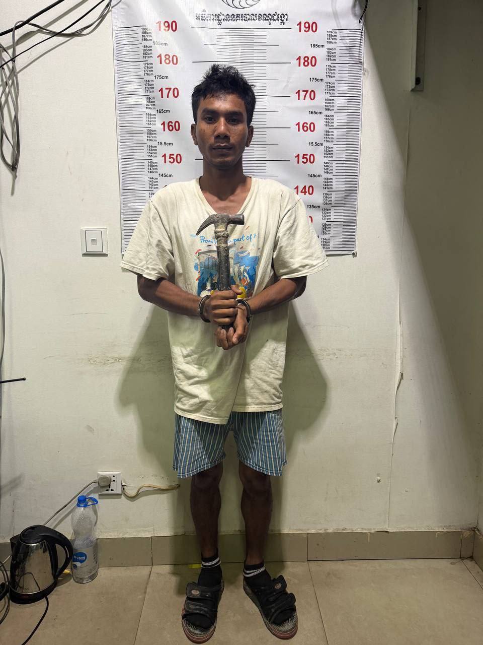 គួរបញ្ជាក់ថា ៖ កាលពីថ្ងៃទី១៧ ខែមីនា ឆ្នាំ២០២៦ វេលាម៉ោង០៨និង៣០នាទី ជនរងគ្រោះឈ្មោះ ហុង ឆៃយ៉ា ភេទប្រុស អាយុ៣០ឆ្នាំ និងឈ្មោះ សុ វិឆ័យ ភេទប្រុស អាយុ៣៣ឆ្នាំ មុខរបរជាងដែក បានរៀបចំសម្ភារៈចេញពីផ្ទះជួល ផ្លូវបេតុង ស្ថិតនៅភូមិហា សង្កាត់ស្ពានថ្ម ខណ្ឌដង្កោ រាជធានីភ្នំពេញ ទៅធ្វើការផ្សារដែកនៅមុខរោងចក្រឆាយណាទីង ផ្លូវបេតុង ស្ថិតនៅភូមិព្រែកជ្រៃ សង្កាត់ស្ពានថ្ម ខណ្ឌដង្កោ រាជធានីភ្នំពេញ ។ ពេលនោះជនសង្ស័យឈ្មោះ ជា កណ្ណារដ្ឋ ភេទប្រុស អាយុ៣៨ឆ្នាំ ជាកម្មកររបស់ជនរងគ្រោះ ស្នាក់នៅផ្ទះជាប់គ្នា បានមកនិយាយសុំលុយថ្លៃពលកម្មរបស់ខ្លួន ដើម្បីទៅលេងផ្ទះម្ដាយនៅមុខផ្សារហេងលី ភូមិបូរីកម្មករ សង្កាត់ទឹកថ្លា ខណ្ឌសែនសុខ រាជធានីភ្នំពេញ ។ ពេលនោះជនរងគ្រោះក៏បានប្រាប់ថាយក ១៥០០០រៀល (មួយម៉ឺនប្រាំពាន់រៀល) បានហើយ រួចជនសង្ស័យ ក៏បាននិយាយថា លុយ ប៉ុណ្ណឹងយកទៅធ្វើអីគ្រាន់ ទើបជនរងគ្រោះបានឱ្យលុយចំនួន ២០០០០រៀល (ពីរម៉ឺនរៀល)ទៀតទៅជនសង្ស័យ រួចក៏ចេញទៅធ្វើការបាត់ទៅ។ លុះដល់ម៉ោង០៩និង៤០នាទី ថ្ងៃខែឆ្នាំដដែល ជនរងគ្រោះនិងឈ្មោះ សុ វិឆ័យ កំពុងតែកាត់ដែកផ្សារសំយ៉ាបកន្លែងលក់ដូរ នៅមុខរោងចក្រឆាយណាទីង ស្ថិតនៅផ្លូវបេតុង ភូមិព្រែកជ្រៃ សង្កាត់ស្ពានថ្ម ខណ្ឌដង្កោ រាជធានីភ្នំពេញ ស្រាប់តែជនសង្ស័យបានមកដល់កន្លែង ធ្វើការ ហើយបានសួរនាំរឿងលុយថ្លៃពលកម្មរបស់ជនសង្ស័យ បន្ទាប់មកជនរងគ្រោះក៏បាននិយាយថាលុយអីគេ មិនសូវមកធ្វើការផង មកបាត់មកបាត់អញ្ចឹង ហើយជនសង្ស័យនៅតែសួរដដែលៗ។ លុះដល់ម៉ោង១០និង២៦នាទី ថ្ងៃខែឆ្នាំដដែល ស្រាប់តែជនសង្ស័យបានស្ទុះទៅយកញញួរដែក ដងស្រោបជ័រ ប្រវែង៣០សង់ទីម៉ែត្រម៉ែត្រ វាយទៅលើជនរងគ្រោះចំនួន០១ញញួរ ត្រូវចំក្បាលផ្នែកខាងក្រោយចំហៀងខាងឆ្វេង រួចក៏រត់គេចខ្លួនចេញទៅបាត់។ ពេលនោះក៏មានប្រជាពលរដ្ឋបានទូរស័ព្ទរាយការណ៍ប្រាប់សមត្ថកិច្ចប៉ុស្តិ៍នគរបាលរដ្ឋបាលស្ពានថ្ម ឱ្យជួយអន្តរាគមន៍ ហើយសមត្ថកិច្ចយើងក៏បានចុះទៅដល់កន្លែងកើតហេតុ ធ្វើការស្រាវជ្រាវឃាត់ខ្លួនជនសង្ស័យបាននៅចំណុចផ្ទះរបស់ជនសង្ស័យ ស្ថិតនៅភូមិហារ សង្កាត់ស្ពានថ្ម ខណ្ឌដង្កោ រាជធានីភ្នំពេញ រួមនិងវត្ថុតាង យកមកធ្វើការសាកសួរនៅប៉ុស្តិ៍នគរបាលរដ្ឋបាលស្ពានថ្មតាមនីតិវិធីច្បាប់ ។ ចំណែកជនរងគ្រោះត្រូវបានឈ្មោះ សុ វិឆ័យ ហៅកង់បីដឹកយកទៅមណ្ឌលសុខភាពស្ពានថ្ម ដេររបួសក្បាលចំនួន០៩ថ្នេរ ហើយជនរងគ្រោះក៏បានមកដាក់ពាក្យបណ្តឹងនៅប៉ុស្តិ៍នគរបាលរដ្ឋបាលស្ពានថ្ម ដើម្បីឱ្យសមត្ថកិច្ចចាត់ការតាមផ្លូវច្បាប់តែម្ដង ៕