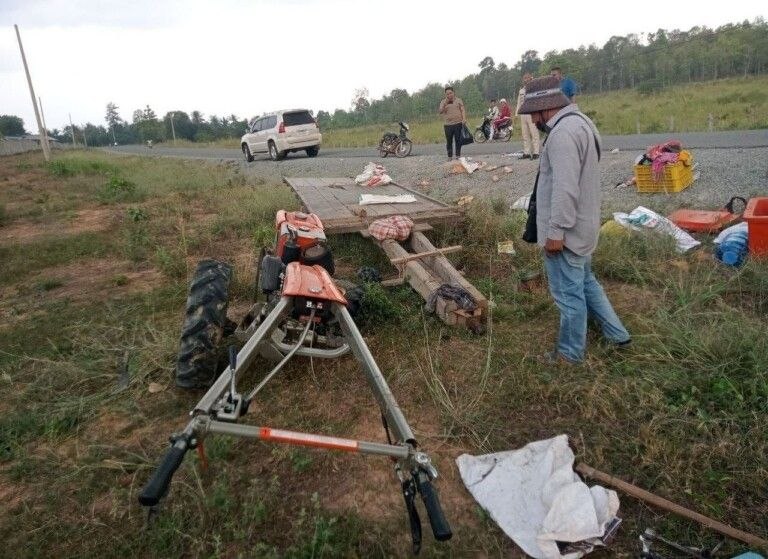 គោយន្តកន្ត្រៃដឹកកម្មករ១៨នាក់ត្រឡប់មកពីបេះស្វាយវិញ ជួបគ្រោះថ្នាក់ក្រឡាប់តាមផ្លូវ
