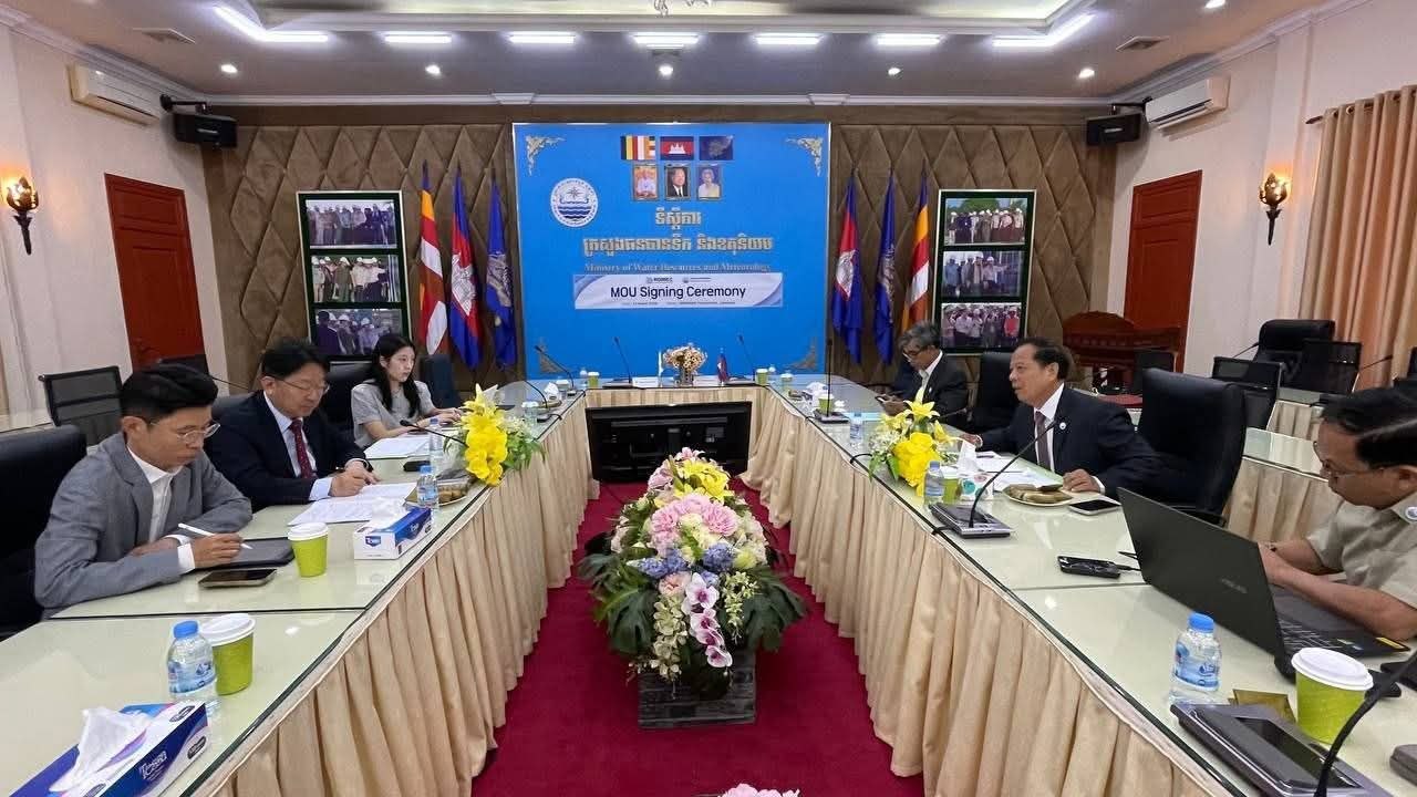 ភ្នំពេញ : លោក ប៉ុញ សច្ចៈ រដ្ឋលេខាធិការ និងជានាយកគម្រោងទទួលថវិកាសាងសង់ពីធនាគារអាហរ័ណ-នីហរ័ណ សាធារណរដ្ឋកូរ៉េ (K-Eximbank) ក្នុងនាមតំណាងដ៏ខ្ពង់ខ្ពស់ លោក ថោ ជេដ្ឋា រដ្ឋមន្ត្រីក្រសួងធនធានទឹក និងឧតុនិយម នាព្រឹកថ្ងៃអង្គារ ៦រោច ខែចេត្រ ឆ្នាំម្សាញ់ សប្តស័ក ពុទ្ធសករាជ ២៥៦៩ ត្រូវនឹងថ្ងៃទី២៤ ខែមីនា ឆ្នាំ២០២៦ នៅទីស្តីការក្រសួង បានដឹកនាំកិច្ចប្រជុំពិភាក្សាការងារ និងចុះហត្ថលេខាលើអនុស្សរណៈនៃការយោគយល់គ្នាជាមួយ លោកបណ្ឌិត Sangyoung Park នាយកគម្រោង KOMEC នៃសាជីវកម្មធនធានទឹកកូរ៉េ (K-Water)។
