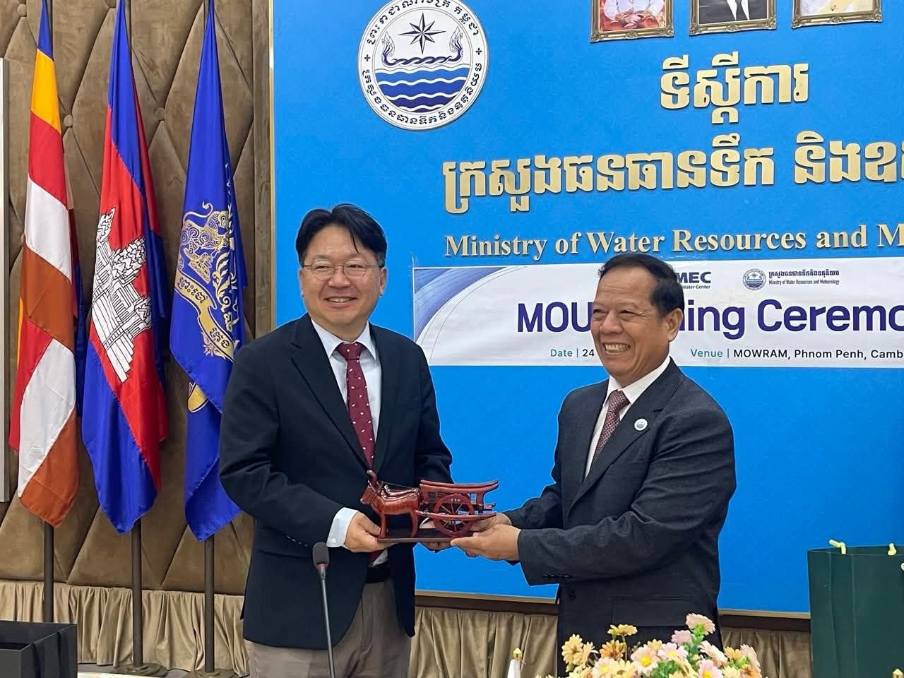 សូមជម្រាបថា កិច្ចប្រជុំនេះក៏មានការអញ្ជើញចូលរួមពីសំណាក់សហការីនៃអង្គភាពគ្រប់គ្រងគម្រោង (PMU) ផងដែរ។ ចំណែកឯខ្លឹមសារសំខាន់នៃអនុស្សរណៈនៃការយោគយល់គ្នានេះ គឺផ្ដោតលើការពង្រឹងកិច្ចសហប្រតិបត្តិការលើសកម្មភាពគ្រប់គ្រងធនធានទឹកប្រកបដោយចីរភាពក្នុងតំបន់មេគង្គ ក្រោមក្របខ័ណ្ឌនៃកិច្ចសហប្រតិបត្តិការរវាងក្រសួងធនធានទឹក និងឧតុនិយម និងមជ្ឈមណ្ឌល KOMEC នៃសាជីវកម្ម K-Water។