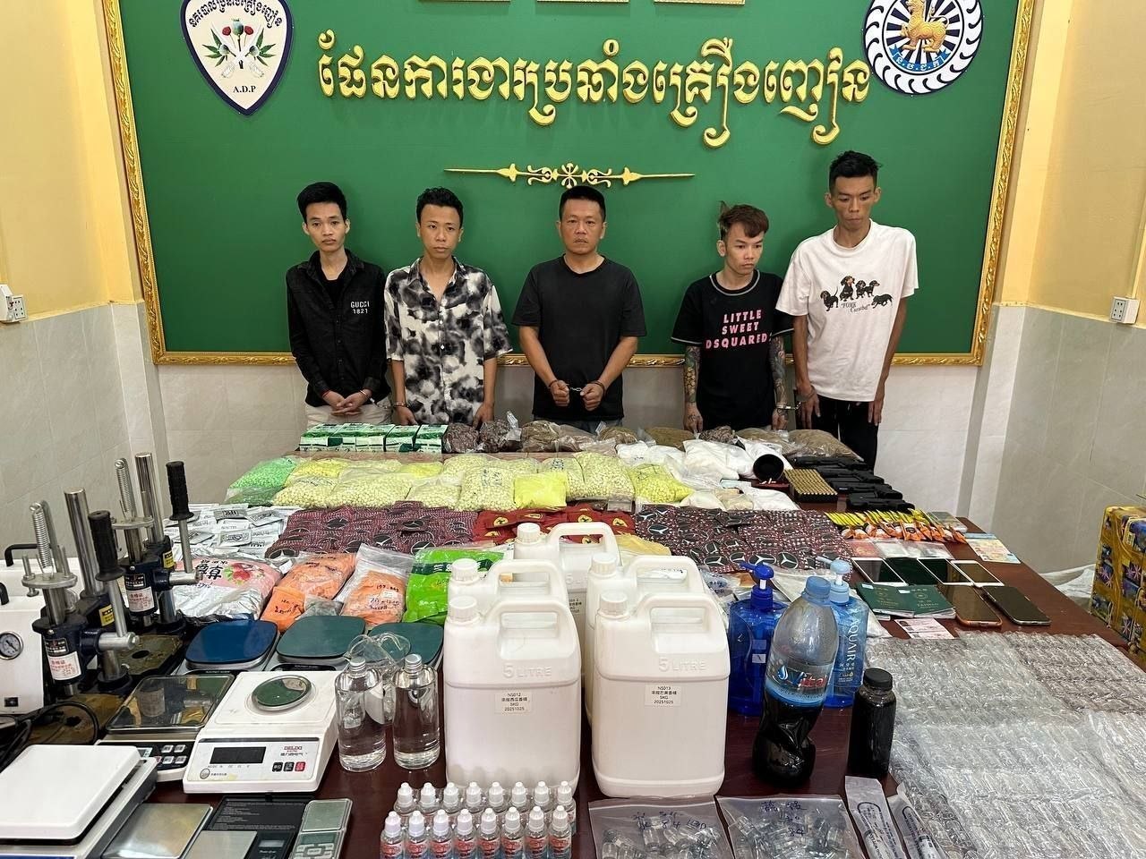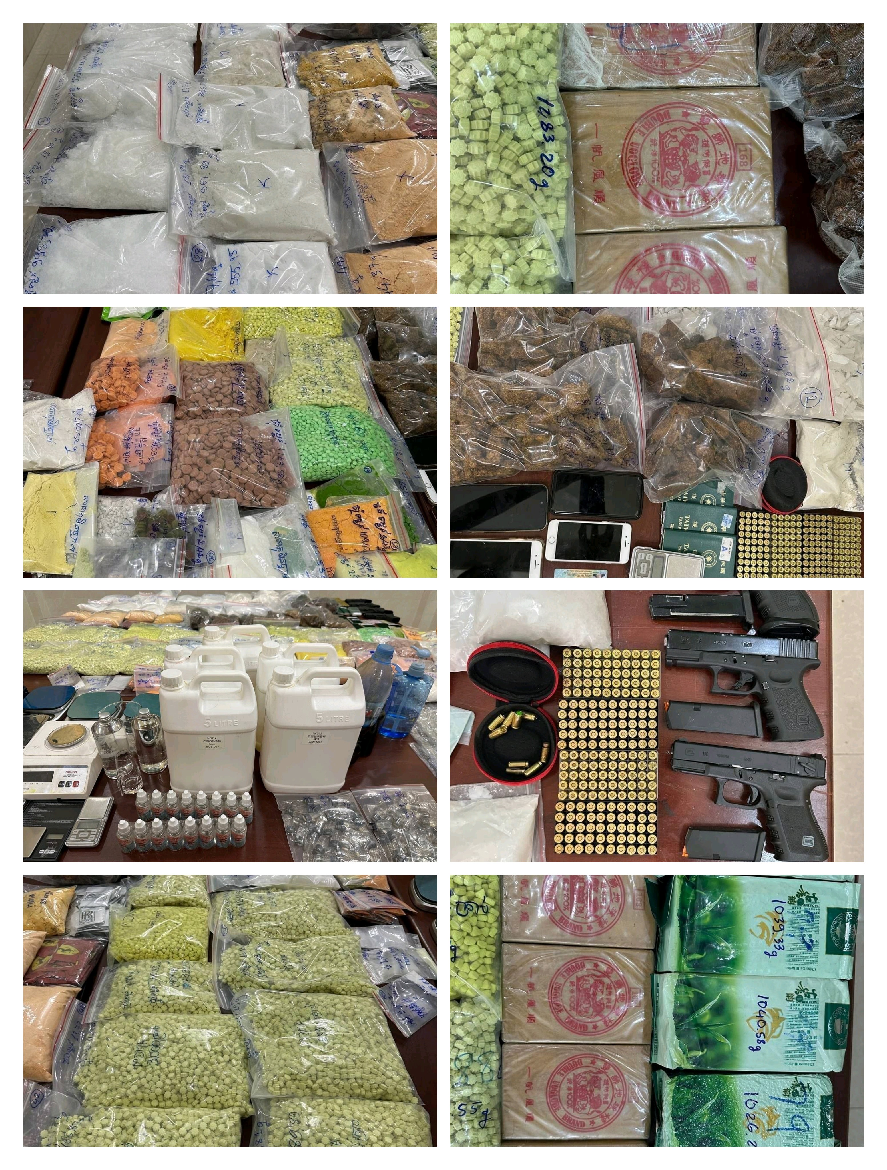 សារធាតុមិនច្បាស់ទម្ងន់ ៨គីឡូ៩៦១,១៤ក្រាម ព្រមទាំងម៉ាសុីនសម្ភារឧបករណ៍កែឆ្នៃគ្រឿងញៀនមួយចំនួនទៀត។