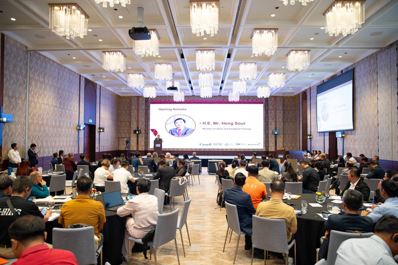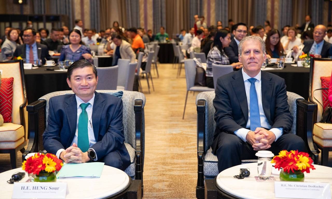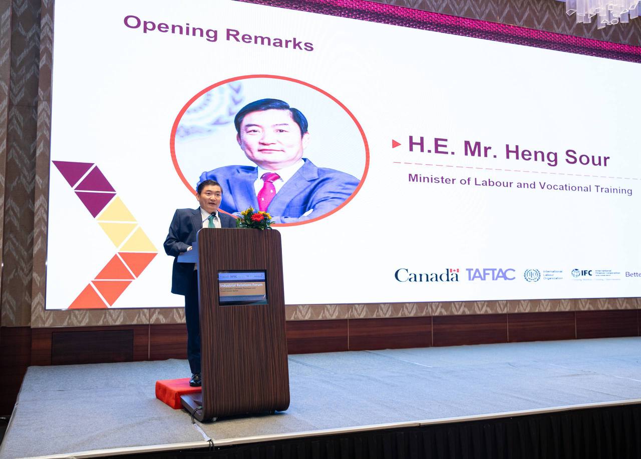 ក្នុងវេទិកាដែលធ្វើឡើងនៅសណ្ឋាគារ Hyatt Regency ភ្នំពេញ លោករដ្ឋមន្រ្តី បានថ្លែងនូវអំណរគុណចំពោះលោក Christian DesRoches ឯកអគ្គរដ្ឋទូតកាណាដាប្រចាំកម្ពុជា និងលោកស្រី Froukje Boele ប្រធានគម្រោងរោងចក្រកាន់តែប្រសើរនៅកម្ពុជា (ILO-BFC) ដែលបានសហការរៀបចំវេទិកានាពេលនេះ ជាវេលាដ៏សមស្របមួយខណៈស្ថានភាពពិភពលោកកាន់តែមិនប្រាកដប្រជា និងជះផលអវិជ្ជមានជាច្រើនលើសេដ្ឋកិច្ច ដែលតម្រូវឱ្យយើងកាន់តែរួមគ្នាជម្នះរាល់ឧបសគ្គស្វែងរកដំណោះស្រាយ ដើម្បីអាចរក្សាបាននូវបរិយាកាសវិនិយោគ និងរក្សាបាននូវការងារជូនបងប្អូនកម្មករនិយោជិត ជាពិសសក្នុងវិស័យកាត់ដេរសម្លៀកបំពាក់ ស្បែកជើង និងផលិតផលធ្វើដំណើរនៅកម្ពុជា (GFT)។