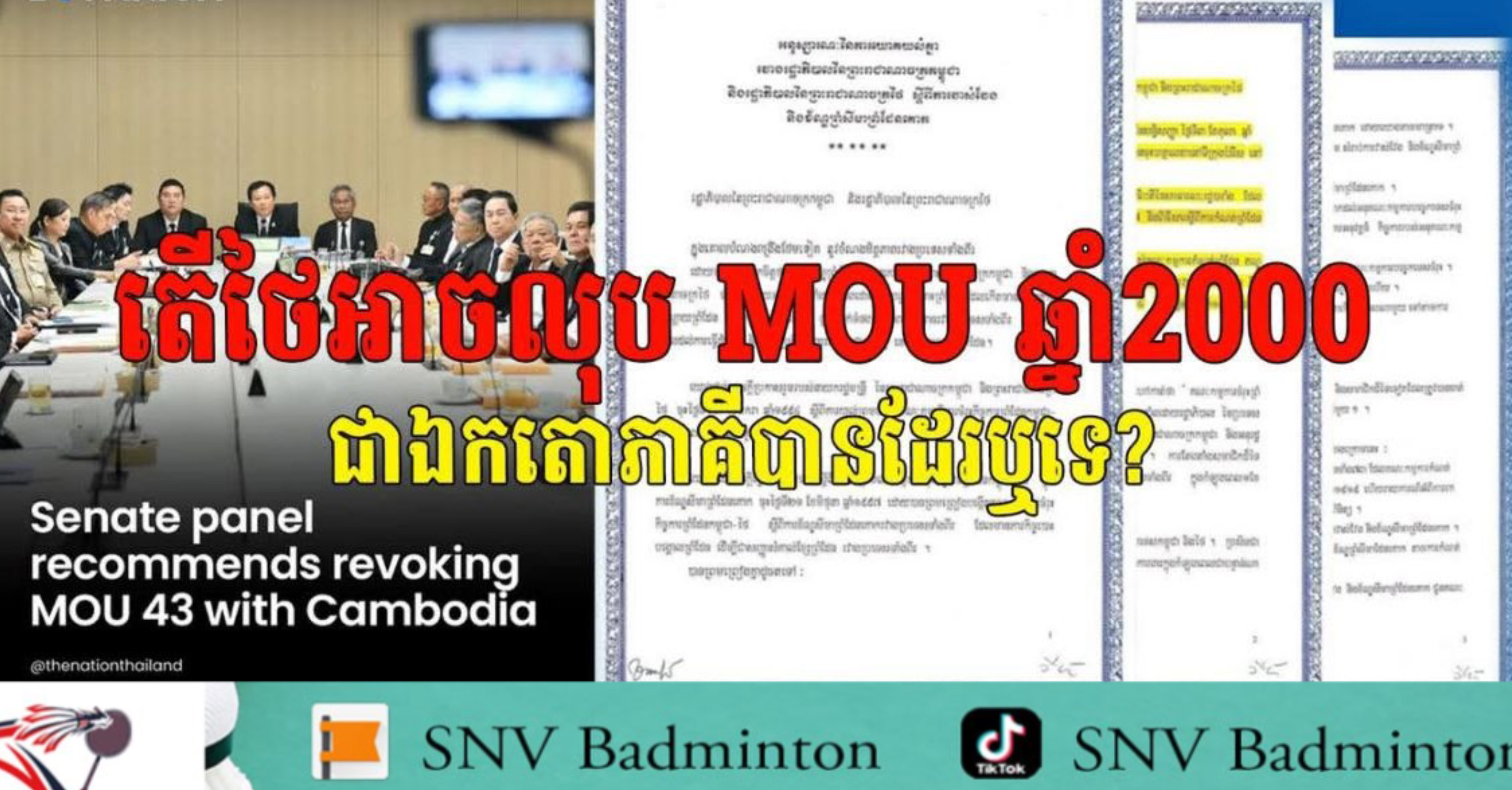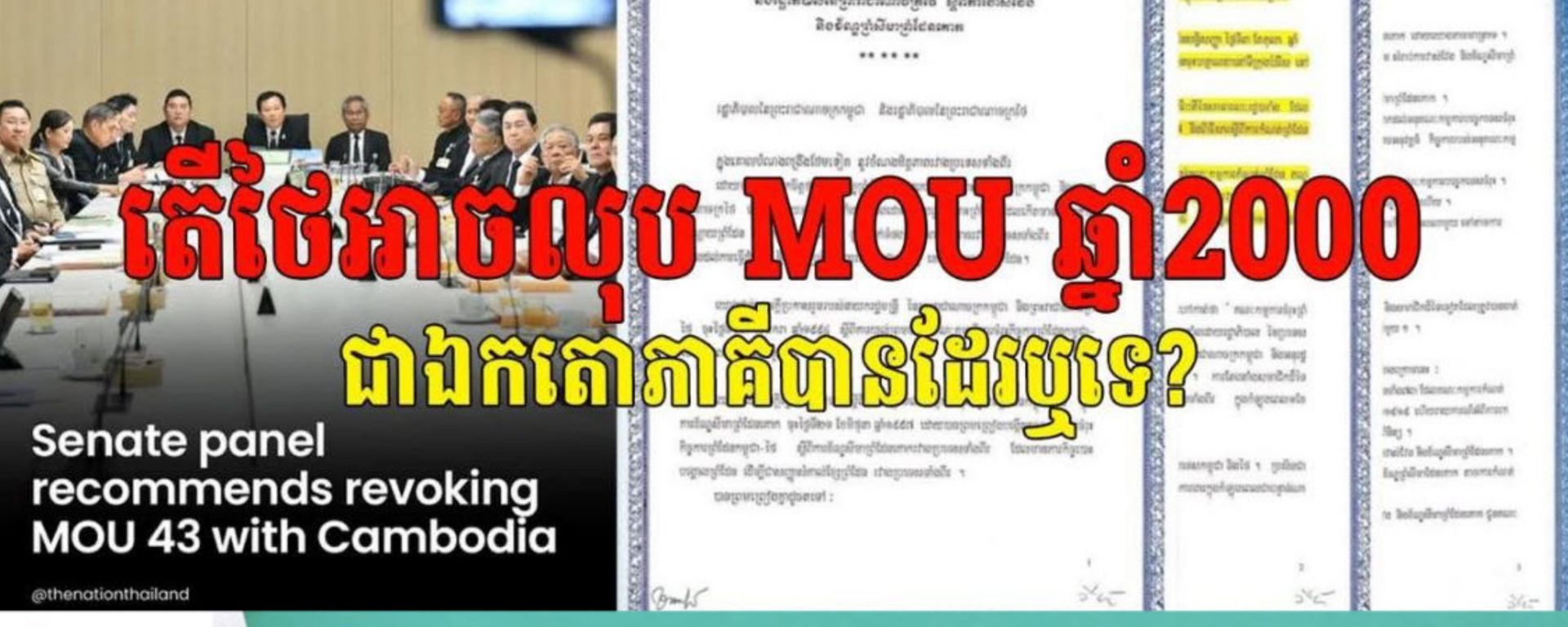 យោងតាមអ្នកនាំពាក្យរដ្ឋលេខាធិការដ្ឋានកិច្ចការព្រំដែនកម្ពុជា កាលពីថ្ងៃទី២៤ ខែមីនា ឆ្នាំ២០២៦ បានឆ្លើយតបទៅសារព័ត៌មានក្នុងស្រុកថៃមួយចំនួនដែលបានផ្សព្វផ្សាយព័ត៌មានពាក់ព័ន្ធនឹងការលើកឡើងពីគណៈកម្មាធិការព្រឹទ្ធសភាថៃ ដែលបានស្នើឲ្យពិចារណាលុបកិច្ចព្រមព្រៀង MOU ឆ្នាំ 2000 រវាងកម្ពុជា និងថៃ។ ប្រធានបទនេះបានបង្កឲ្យមានការចាប់អារម្មណ៍ខ្លាំង ពិសេសលើទស្សនៈច្បាប់អន្តរជាតិ និងស្ថិរភាពនយោបាយក្នុងតំបន់។