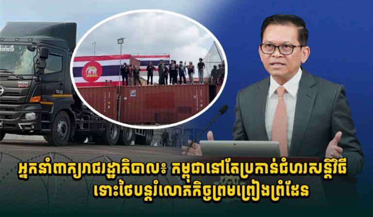 ទន្ទឹមនឹងនោះ កម្ពុជាក៏បាន និងកំពុងជំរុញឱ្យភាគីថៃអនុវត្តតាមស្មារតីចំណុចទី៣ និងទី៤ នៃសេចក្តីប្រកាសរួម ដែលភាគីទាំងពីរឯកភាពគ្នាប្រគល់តួនាទីឱ្យគណៈកម្មការចម្រុះព្រំដែនបន្តអនុវត្តការងារវាស់វែង និងខ័ណ្ឌសីមាព្រំដែនឱ្យបានឆាប់រហ័សបំផុត និងផ្តល់អាទិភាពខ្ពស់បំផុតដល់តំបន់ដែលមានជនស៊ីវិលរស់នៅ ដើម្បីសម្រេចបាននូវសន្តិភាពយូរអង្វែងតាមបណ្តោយព្រំដែនរវាងប្រទេសទាំងពីរ និងអនុញ្ញាតឱ្យជនភៀសសឹកត្រឡប់ទៅផ្ទះសម្បែងវិញដោយគ្មានការរារាំង ប្រកបដោយសុវត្ថិភាព និងសេចក្តីថ្លៃថ្នូរ ។