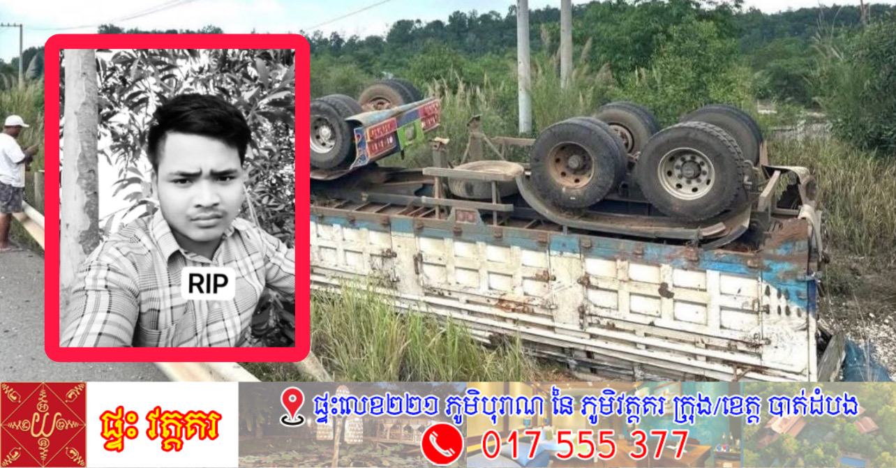 ខេត្តព្រះសីហនុ÷បុរសអ្នកបើកបររថយន្តម្នាក់ បានស្លាប់ ក្នុងហេតុការណ៍គ្រោះថ្នាក់ចរាចរណ៍ផ្លូវគោក រថយន្តធុនធំដឹកដំឡូង បើកបរក្នុងល្បឿនលឿនហើយបានរេចង្កូតទៅខាងស្ដាំ ទៅបុករះបង្កាន់ដៃស្ពាន ធ្លាក់ផ្លូវបណ្តាលឲ្យក្រឡាប់ ។