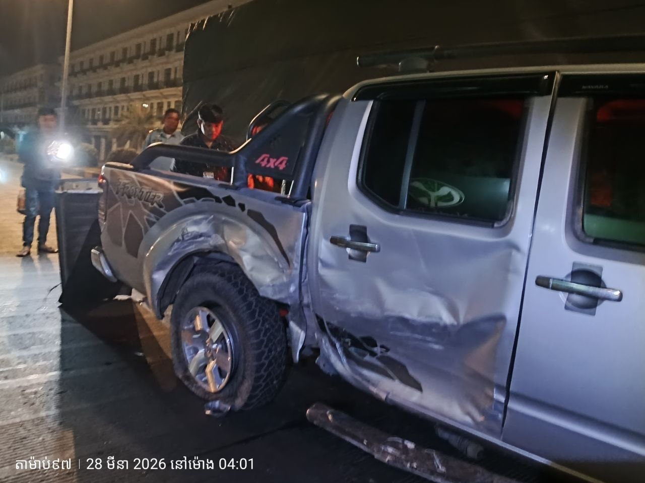 គ្រោះថ្នាក់ចរាចរណ៍នេះបានកើតឡើងនៅវេលាម៉ោង 4ទៀបភ្លឺឈានចូលថ្ងៃទី 28 ខែមីនា ឆ្នាំ2026 នៅចំណុចភ្លើងស្តុប 2004 ផ្លូវណតប៊្រីតស្ថិតក្នុងសង្កាត់អូរបែកក្អម ខណ្ឌសែនសុខ រាជធានីភ្នំពេញ។