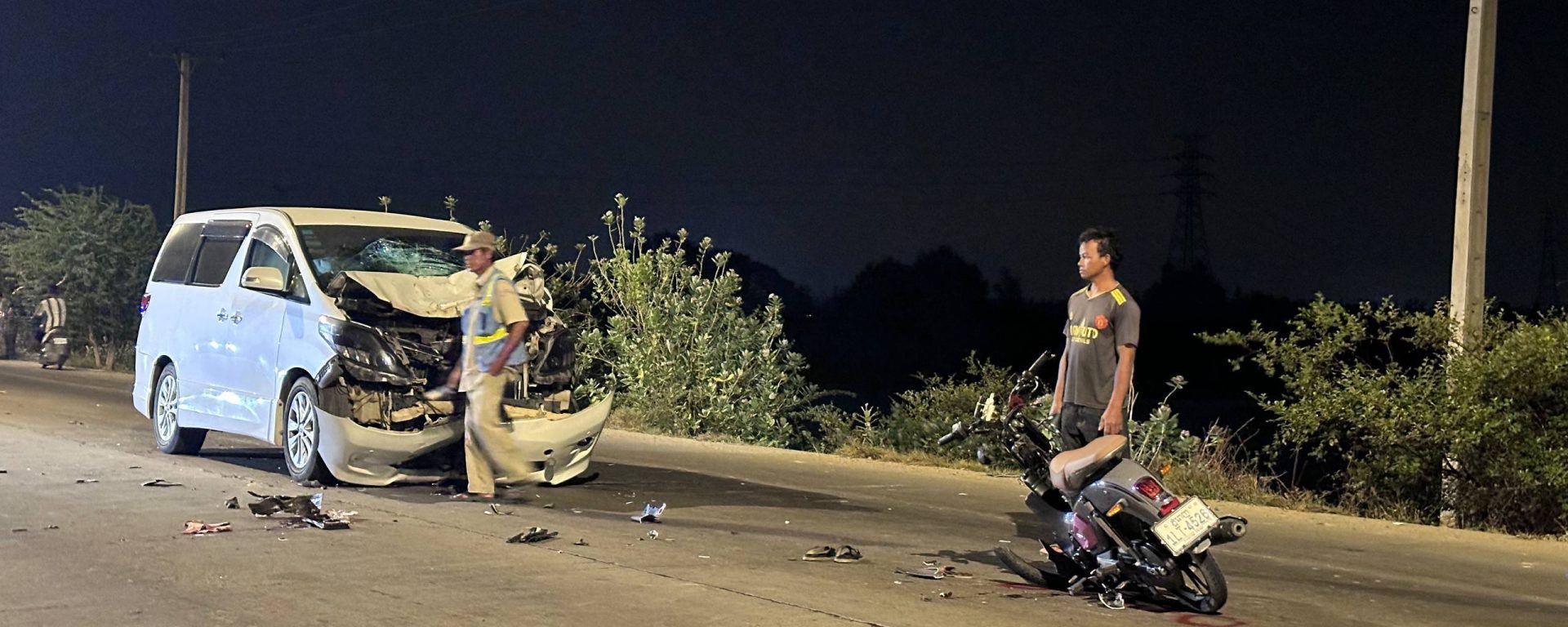 រថយន្ត ALPHARDបេីកឆ្លងគន្លងផ្លូវជ្រុលទៅបុកម៉ូតូជិះទិសដៅបញ្រ្ចាសគ្នាចំពីមុខពេញទំហឹងបណ្ដាលឲ្យនារី២នាក់រងរបួសធ្ងន់