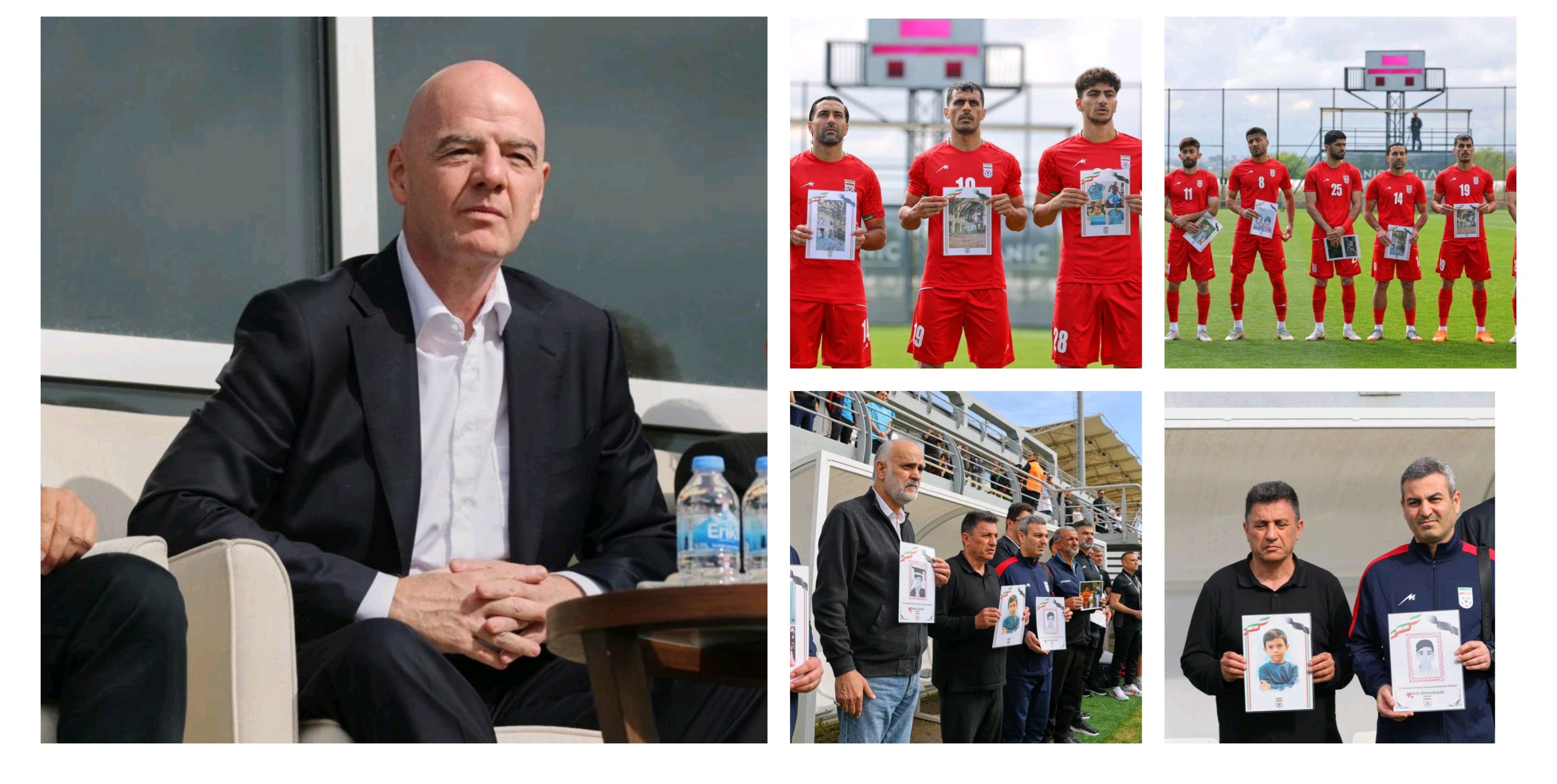 Infantino បាននិយាយជាមួយកីឡាករ និងមន្ត្រីសហព័ន្ធបាល់ទាត់របស់ប្រទេសអ៊ីរ៉ង់ បន្ទាប់ពីបានហោះហើរពីរដ្ឋផ្លរីដា ទៅកាន់រមណីយដ្ឋានឆ្នេរទួរគី Antalya ជាកន្លែងដែលក្រុមជម្រើសជាតិអ៊ីរ៉ង់បានលេងការប្រកួតកម្ដៅសាច់ដុំចុងក្រោយរបស់ខ្លួនសម្រាប់ការប្រកួតដែលសហរដ្ឋអាមេរិកនឹងធ្វើជាម្ចាស់ផ្ទះជាមួយកាណាដា និងម៉ិកស៊ិក។
