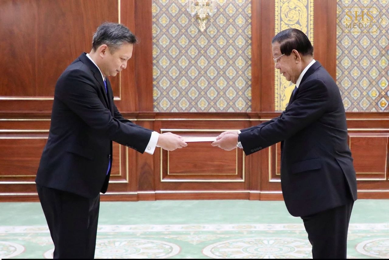 ភ្នំពេញ : នៅវិមានសាមគ្គីភាពនៃព្រឹទ្ធសភា នាព្រឹកថ្ងៃព្រហស្បតិ៍ ១៥កើត ខែចេត្រ ឆ្នាំម្សាញ់ សប្តស័ក ពុទ្ធសករាជ ២៥៦៩ ត្រូវនឹងថ្ងៃទី២ ខែមេសា ឆ្នាំ២០២៦ សម្តេចអគ្គមហាសេនាបតីតេជោ ហ៊ុន សែន ប្រមុខរដ្ឋស្តីទីនៃព្រះរាជាណាចក្រកម្ពុជា បានអនុញ្ញាតឱ្យ លោក ផាង ឈីវី (Pang Chee Wee) ឯកអគ្គរដ្ឋទូតថ្មីនៃសាធារណរដ្ឋសិង្ហបុរី ប្រចាំនៅកម្ពុជា ចូលជួប និងប្រគល់សារតាំង។