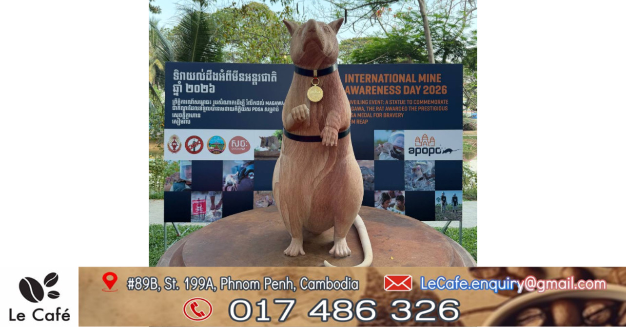 ភ្នំពេញ ៖….វីរ កណ្តុរ Magawaបានរកឃើញគ្រាប់មីនជាង១០០គ្រាប់ លេី ផ្ទៃដី ១៤១.០០០ ម៉ែត្រ ក្រឡា ចាប់ ពី ឆ្នាំ ២០១៦-២០២០ នៅលើទឹកដីកម្ពុជា ។លោក បណ្ឌិត លី ធុជ ទេសរដ្ឋមន្រ្តី អនុប្រធានទី១ អាជ្ញាធរមីន បានបញ្ជាក់ឱ្យដឹងបែបនេះ ក្នុងពីធី សម្ភោធរូបសំណាកវីរកណ្តុរហិតមីន Magawa នៃអង្គការដោះមីន APOPO ។ វីរ កណ្តុរ Magawa បាន ទទួល មេដាយ មាស PDSA (People’s Dispensary for Sick Animals) សម្រាប់ ភាព ក្លាហាន ក្នុង ការ ជួយ សង្រ្គោះ ជីវិត មនុស្ស ជាជំនួយរបស់ចក្រភព អង់គ្លេស ក្នុងខែ កញ្ញា ឆ្នាំ ២០០០ ដោយ បាន រកឃើញ គ្រាប់មីន និងសំណល់ជាតិផ្ទុះពីសង្រ្គាមចំនួនជាង១០០គ្រាប់ លេី ផ្ទៃដី ចំនួន ១៤១.០០០ ម៉ែត្រ ក្រឡា ចាប់ ពី ឆ្នាំ ២០១៦- ២០២០ ។ ពិធីសម្ពោធនេះបានប្រព្រឹត្ដទៅកាលពីថ្ងៃទី០៣ ខែមេសា ឆ្នាំ២០២៦ នៅខេត្តសៀមរាប ខេត្ត ព្រះវិហារ តំណាងអង្គភាពស៊ីម៉ាក់ អង្គការ APOPO ប្រតិបត្តិករដោះមីន។