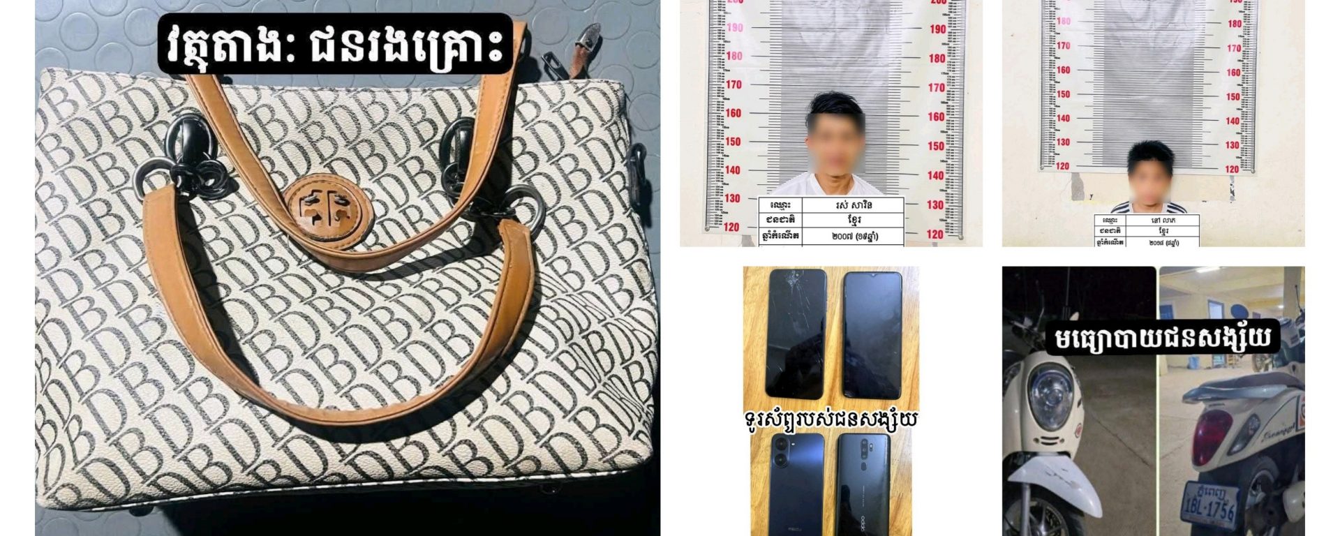 ខេត្តកណ្ដាល÷ មន្ត្រីនគរបាលនៃអធិការរដ្ឋាននគរបាលស្រុកអង្គស្នួលបានឲ្យដឹងនៅថ្ងៃទី០៦ខែមេសានេះថា យុវជនម្នាក់ដែលជាមុខសញ្ញាក្នុងក្រុមទុច្ចរិតដឹកទម្លាក់ឲ្យដើរលួចតាមផ្សារ បាននាំក្មេង អាយុ៨ឆ្នាំ ម្នាក់ ធ្វើ សកម្មភាពចូលលួចកាបូបលុយពីស្ត្រីជាអាជីវករកំពុងលក់ដូរ ប៉ុន្តែរត់មិនរួចត្រូវប្រជាពលរដ្ឋ និងសមត្ថកិច្ចដេញចាប់ខ្លួនបានភ្លាមៗ កាលពីថ្ងៃទី៤មេសា ២០២៦ វេលាម៉ោង ១៨ និង៣០នាទី នៅចំណុចតូបលក់ដូរក្នុងភូមិថ្នល់ទទឹង ឃុំដំណាក់អំពិល ស្រុកអង្គស្នួល ខេត្តកណ្តាល។