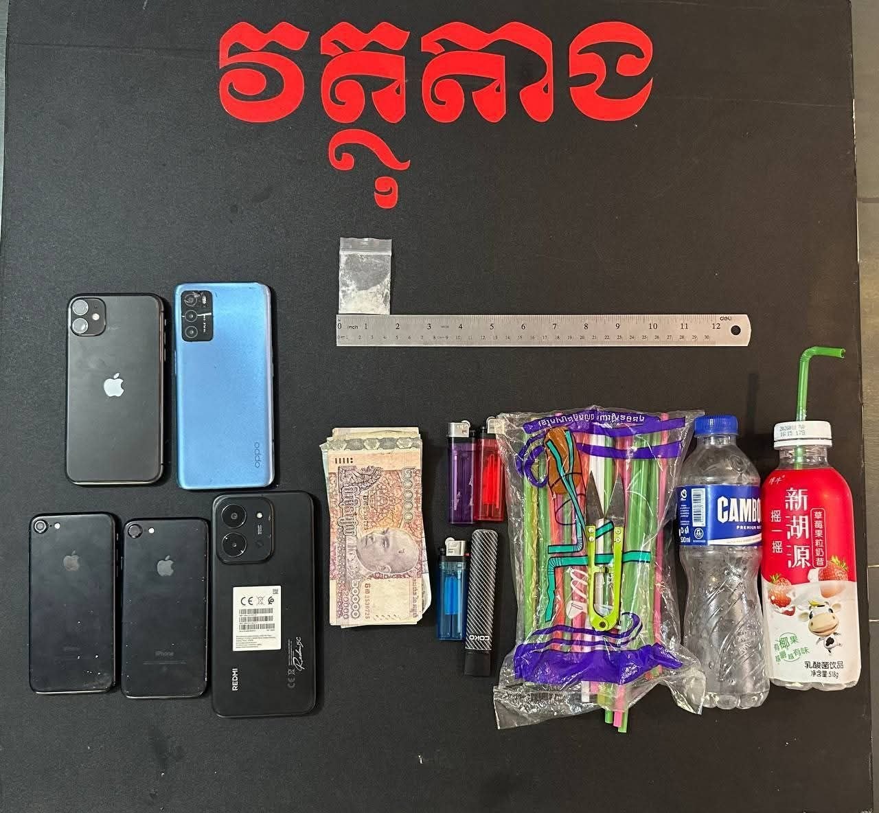 លោកអធិការបានបន្តថា មុនឈានដល់ការឆ្មក់ចូល បន្ទប់ជួល កម្លាំងនគរបាលបានល្បាតតាមផ្លូវ និងឃាត់ ខ្លួនឈ្មោះ សន ថា និងឈ្មោះឃី សុខណែត ដែលកំពុង ជិះម៉ូតូឌុបគ្នា ដោយរឹបអូសបានថ្នាំញៀន ១កញ្ចប់។ ពួកគេសារភាពថាបានទិញថ្នាំនេះពីឈ្មោះ សឿន ដេវីត ក្នុងតម្លៃ ៣៧០០០រៀល ទើបសមត្ថកិច្ចបន្តតាមទៅវែកមុខដល់បន្ទប់ជួល និងឃាត់ខ្លួនបក្សពួក ៥នាក់ទៀត ដែលកំពុងប្រមូលផ្ដុំគ្នាប្រើប្រាស់គ្រឿងញៀន។