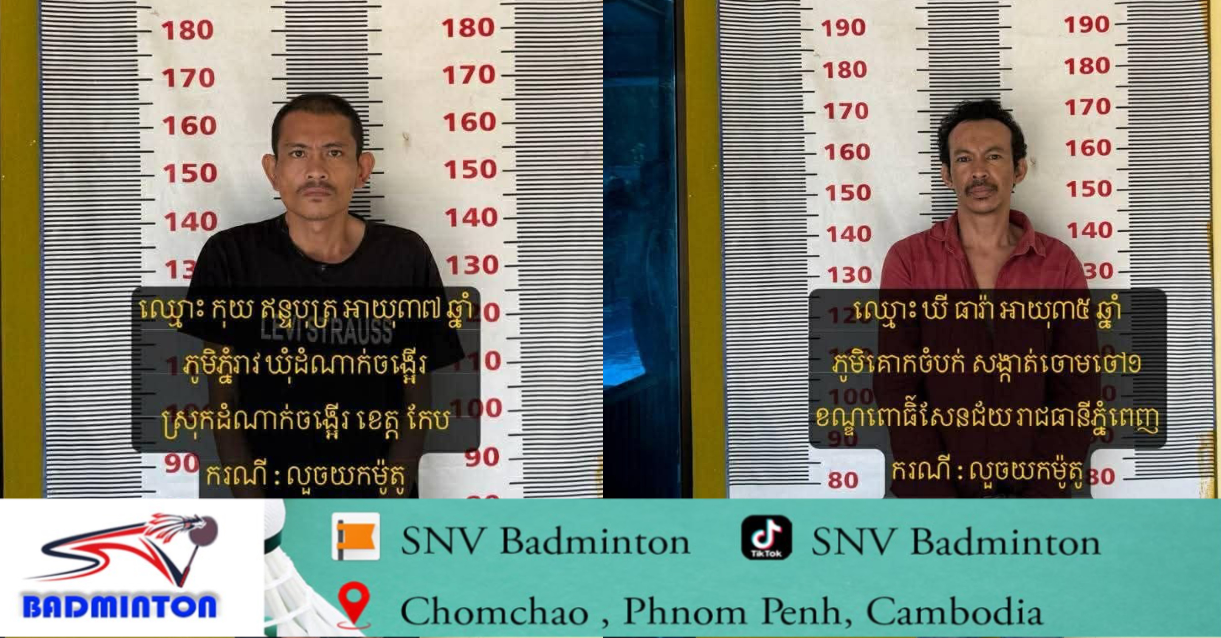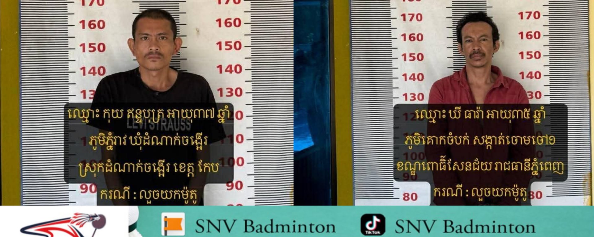 ប្រភពពីសមត្ថកិច្ចបានឲ្យដឹងថា នៅថ្ងៃទី០៦​ ខែមេសា ឆ្នាំ២០២៦ វេលាម៉ោង០៨:០០ នាទី កម្លាំងជំនាញនគរបាលយុត្តិធម៌ក្រុងច្បារមន សហការជាមួយកម្លាំងប៉ុស្ដិ៍ស្វាយក្រវ៉ាន់ បានចុះស្រាវជ្រាវ ក្នុងករណី លួចម៉ូតូ នៅចំណុចមុខបន្ទប់ជួលស្ថិត​ ភូមិផ្សារចាស់ សង្កាត់ស្វាយក្រវ៉ាន់ ក្រុងច្បារមន ខេត្តកំពង់ស្ពឺ បានឈានដល់ការកំណត់មុខសញ្ញា នឹងធ្វើការបង្រ្កាបបាន ជនសង្ស័យ នឹងវត្ថុតាង នៅរាជធានីភ្នំពេញ ជនសង្ស័យ២នាក់÷