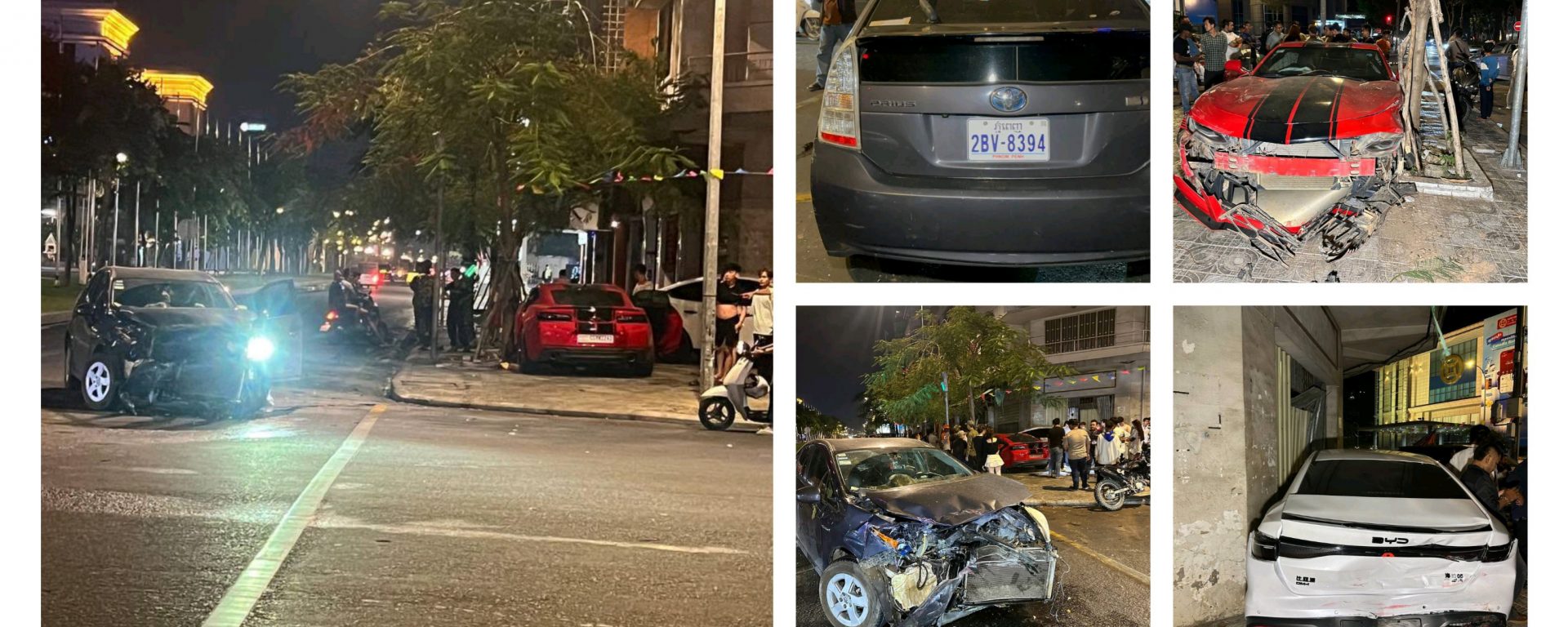 ភ្នំពេញ ៖ បុរសម្នាក់បានបេីករថយន្ត ម៉ាក TOYOTA PRIUS មួយគ្រឿងក្នុងល្បឿនលឿនឆ្លងផ្លូវទាំងបំពានស្តុបក្រហមក៏ជ្រុលទៅបុករថយន្តម៉ាក CHEVROLET CAMARO បើកឆ្លងស្តុបខៀវយ៉ាងពេញទំហឹងប៉ើង ទៅបុករថយន្តម៉ាក BYD ទៅផ្ទបទ្វារផ្ទះប្រជាពលរដ្ឋរងការខូចខាតធ្ងន់ធ្ងរ ។