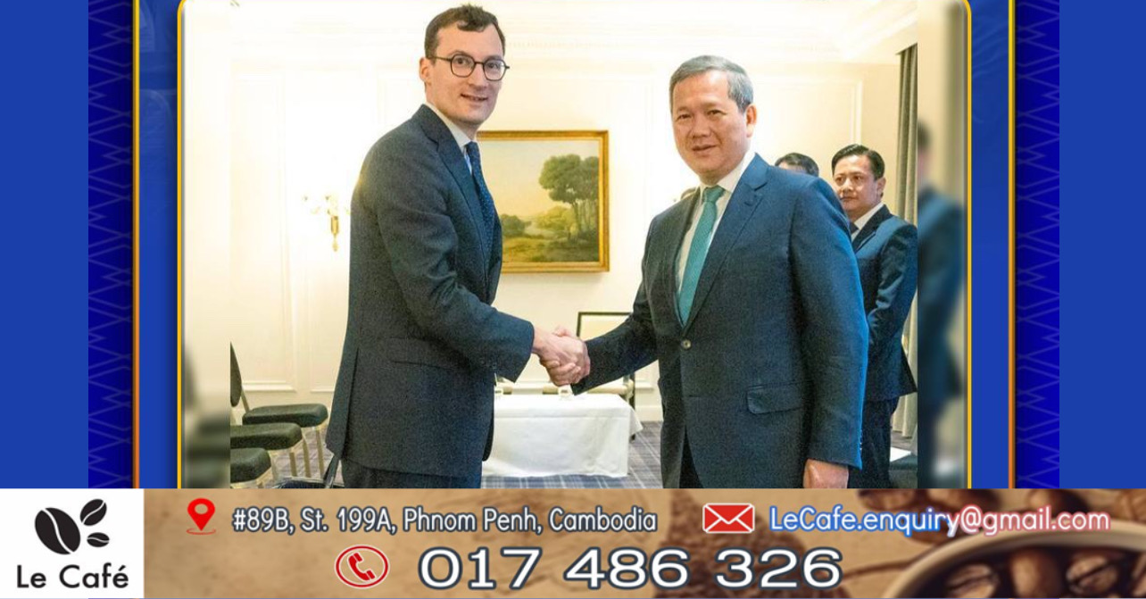 ភ្នំពេញ​៖​ នាព្រឹកថ្ងៃទី៨ ខែមេសា ឆ្នាំ២០២៦, សម្តេចមហាបវរធិបតី ហ៊ុន ម៉ាណែត នាយករដ្ឋមន្ត្រីនៃព្រះរាជាណាចក្រកម្ពុជា បានអនុញ្ញាតឱ្យលោក Rémi Maumont de Longevialle នាយកប្រតិបត្តិក្រុមហ៊ុន VINCI Airports ចូលជួបសម្តែងការគួរសម និងពិភាក្សាការងារ ក្នុងឱកាសនៃការអញ្ជើញចូលរួមកិច្ចប្រជុំកំពូលស្តីពី «សុខភាពតែមួយ» (One Health Summit) នៅទីក្រុងលីយ៉ុង និងបំពេញទស្សនកិច្ចការងារនៅសាធារណរដ្ឋបារាំង ចាប់ពីថ្ងៃទី៦ ដល់ថ្ងៃទី៩ ខែមេសា ឆ្នាំ២០២៦។