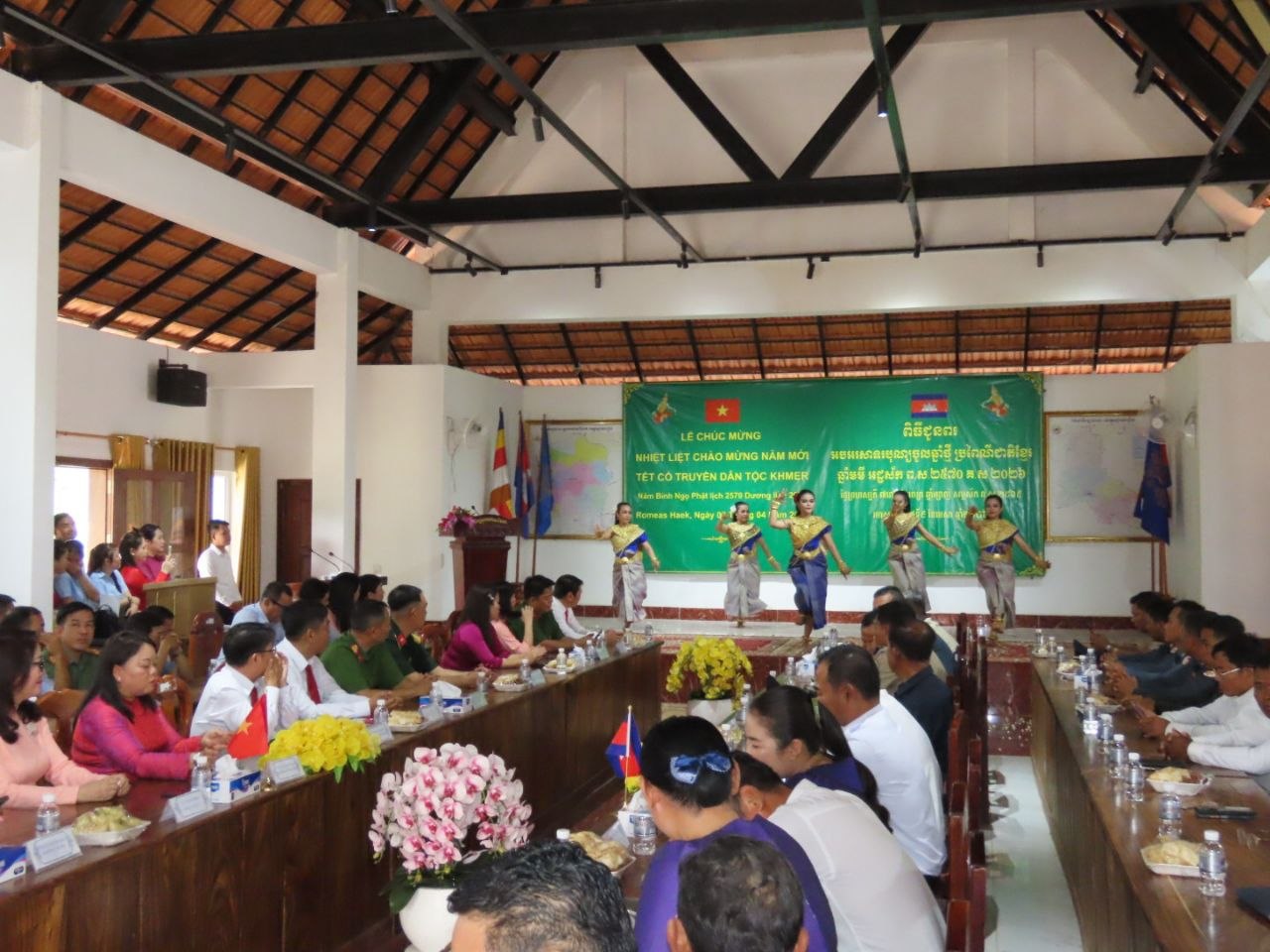 លោក អភិបាលស្រុក សូមសំដែងនូវការស្វាគមន៍យ៉ាងកក់ក្តៅ និងសូមអរគុណចំពោះ លោកស្រីប្រធានគណៈកម្មាធិការប្រជាជនឃុំតឹនបៀន លោកប្រធានគណៈកម្មាធិការប្រជាជនឃុំភឿកយិន និងលោកប្រធានគណៈកម្មាធិការប្រជាជនឃុំហ្វាហួយ ខេត្តតៃនិញ ព្រមទាំងគណៈប្រតិភូនៃឃុំទាំងបី ដែលបានអញ្ជើញចូលរួមអបអរសាទរ និងជូនពរឆ្នាំថ្មី ក្នុងឱកាសពិធីបុណ្យចូលឆ្នាំថ្មីប្រពៃណីជាតិខ្មែរ ឆ្នាំមមី អដ្ឋស័ក ព.ស.២៥៧០ គ.ស.២០២៦ ដែលនឹងឈានចូលមកដល់នាពេល ខាងមុខ ជូនចំពោះថ្នាក់ដឹកនាំស្រុករមាសហែក នាពេលនេះ។