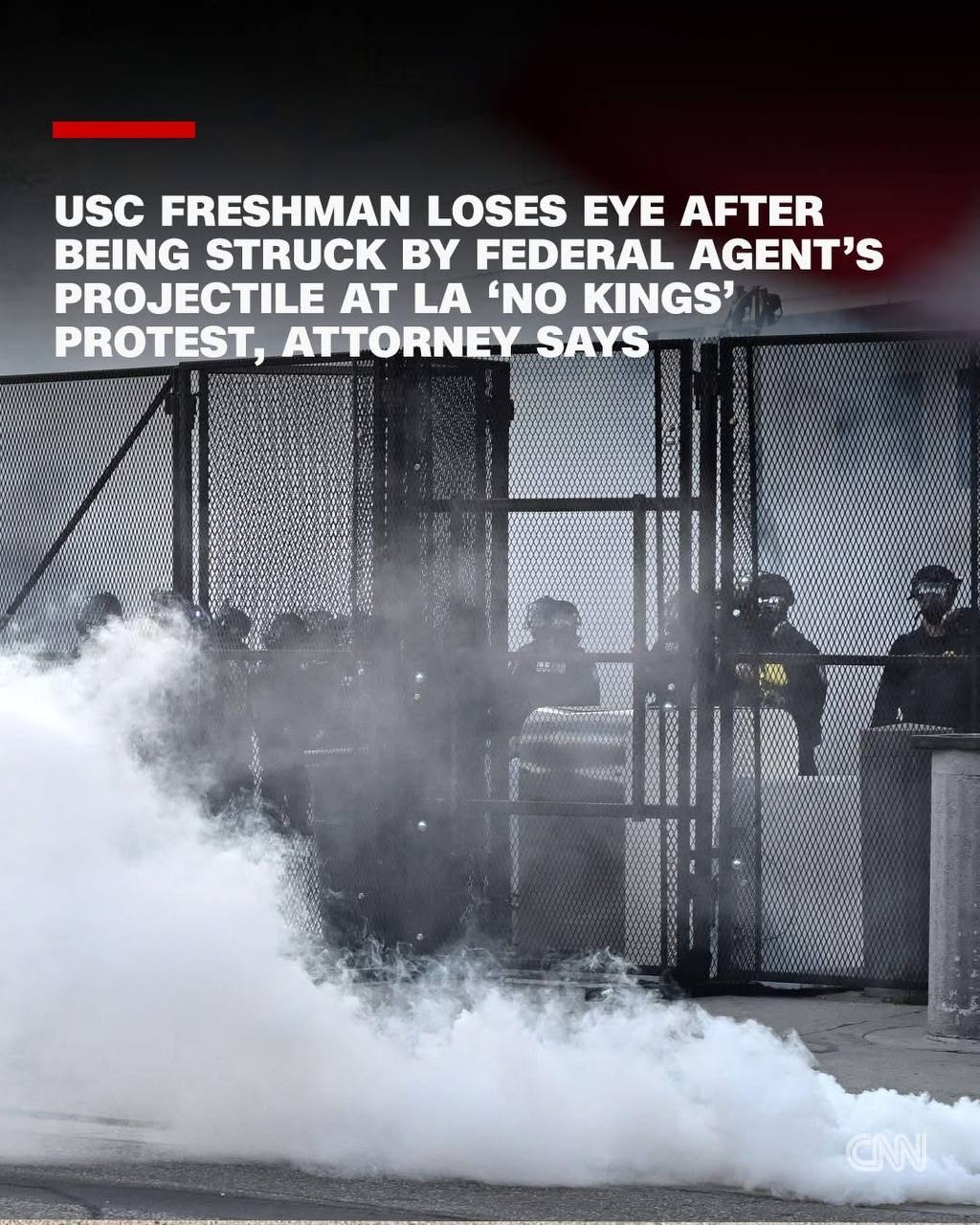 អន្តរជាតិ ៖ យោងតាមមេធាវីរបស់គាត់ យុវជនអាយុ 18 ឆ្នាំម្នាក់ត្រូវបានគេចោទប្រកាន់ថាត្រូវបានបា-/ញ់ដោយគ្រា-/ប់ផ្លោងដែលបាញ់ដោយភ្នាក់ងារសហព័ន្ធម្នាក់ ខណៈពេលកំពុងចូលរួម និងកត់ត្រាការតវ៉ាកាលពីខែមុន ដែលធ្វើឲ្យនិស្សិតឆ្នាំទីមួយនៃសាកលវិទ្យាល័យ Southern California រូបនេះគ្មានភ្នែកម្ខាង។