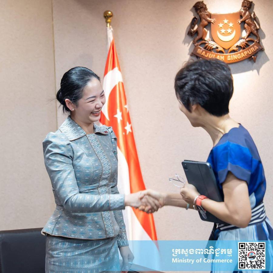 សិង្ហបុរី៖ លោកស្រី ចម និម្មល រដ្ឋមន្រ្តីក្រសួងពាណិជ្ជកម្ម បានជួបពិភាក្សាការងារជាមួយលោកជំទាវ Grace Fu រដ្ឋមន្រ្តីក្រសួងបរិស្ថាន និងចីរភាព និងជារដ្ឋមន្ត្រីទទួលបន្ទុកទំនាក់ទំនងពាណិជ្ជកម្ម នៃសាធារណរដ្ឋសិង្ហបុរី នាព្រឹកថ្ងៃសុក្រ ទី១០ ខែមេសា ឆ្នាំ២០២៦ នៅសាធារណរដ្ឋសិង្ហបុរី។