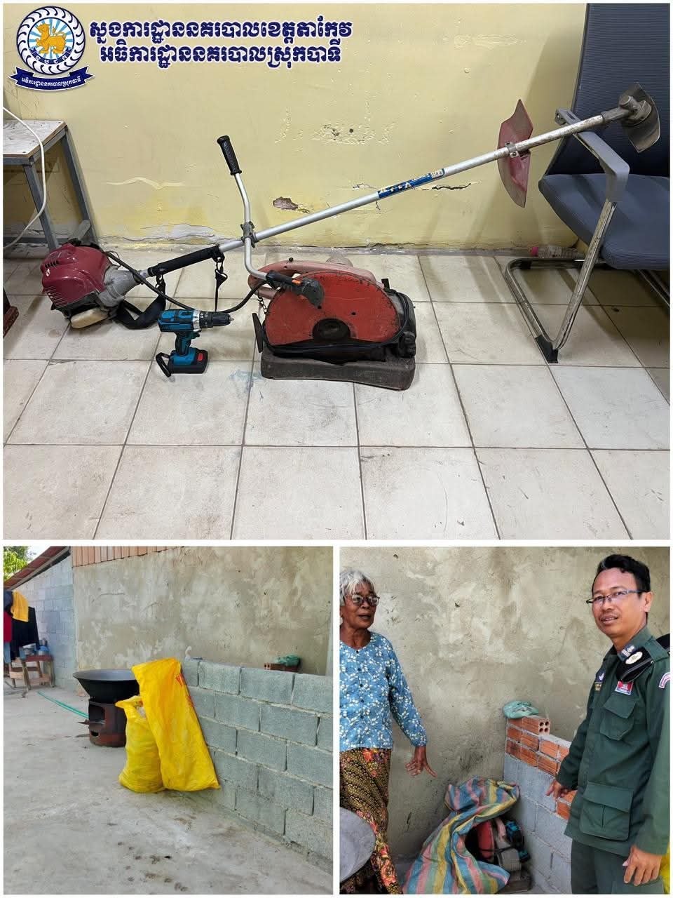 ជនសង្ស័យបានធ្វើសកម្មភាពចូលលួចសម្ភារៈប្រើប្រាស់នៅក្នុងផ្ទះរបស់ជនរងគ្រោះឈ្មោះ លាង សុវណ្ណនីម ភេទប្រុស អាយុ ៤៥ ឆ្នាំ មុខរបរលក់ឪឡឹក មានទីលំនៅភូមិទួលស្លែង ឃុំក្រាំងលាវ ស្រុកបាទី ខេត្តតាកែវ រួមមាន៖