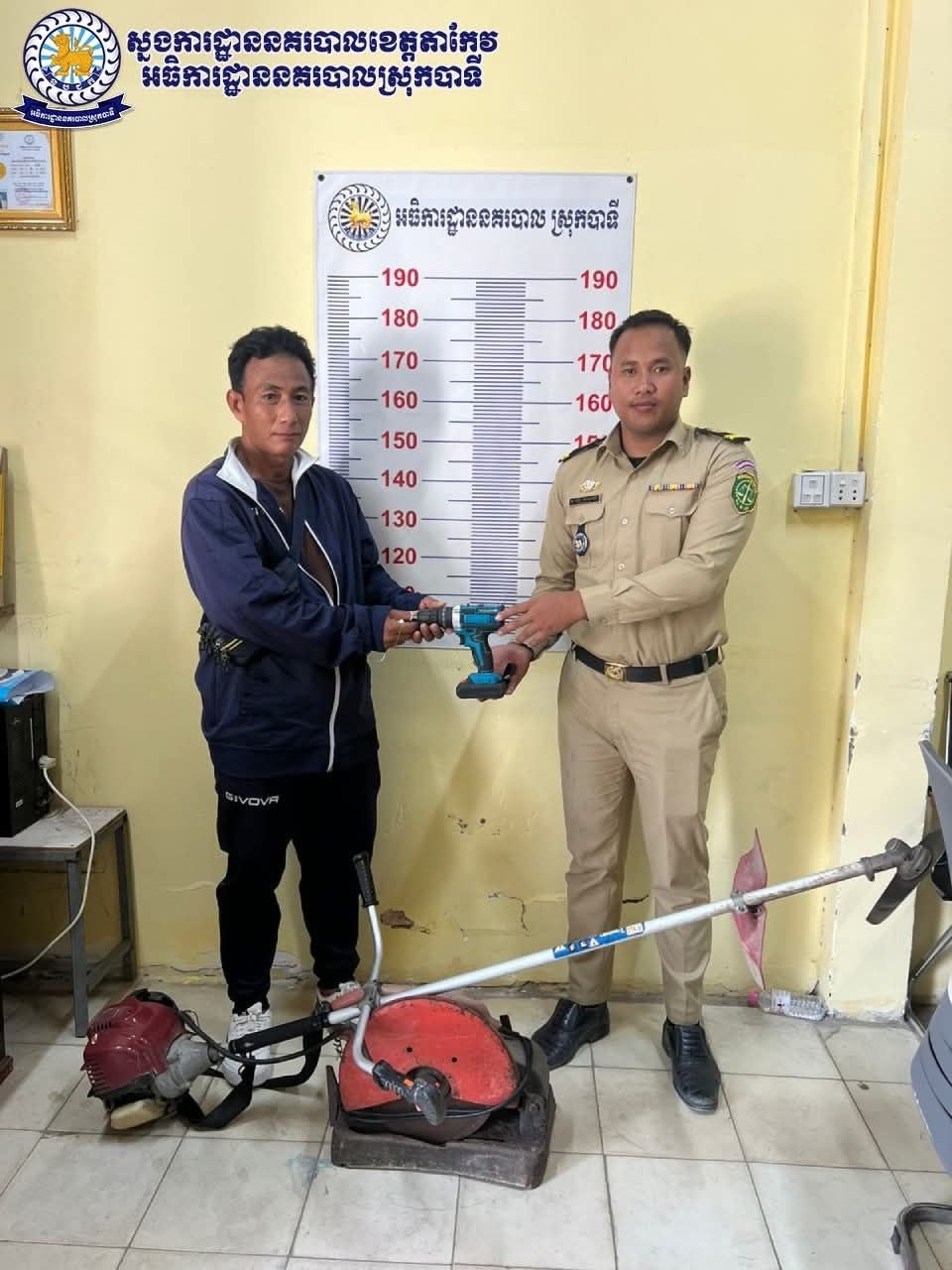 នគរបាលស្រុកបាទីបានឃាត់ខ្លួនជនសង្ស័យម្នាក់ករណីលួចម៉ូទ័រកាត់ស្មៅនិងសម្ភារៈមួយចំនួនទៀត