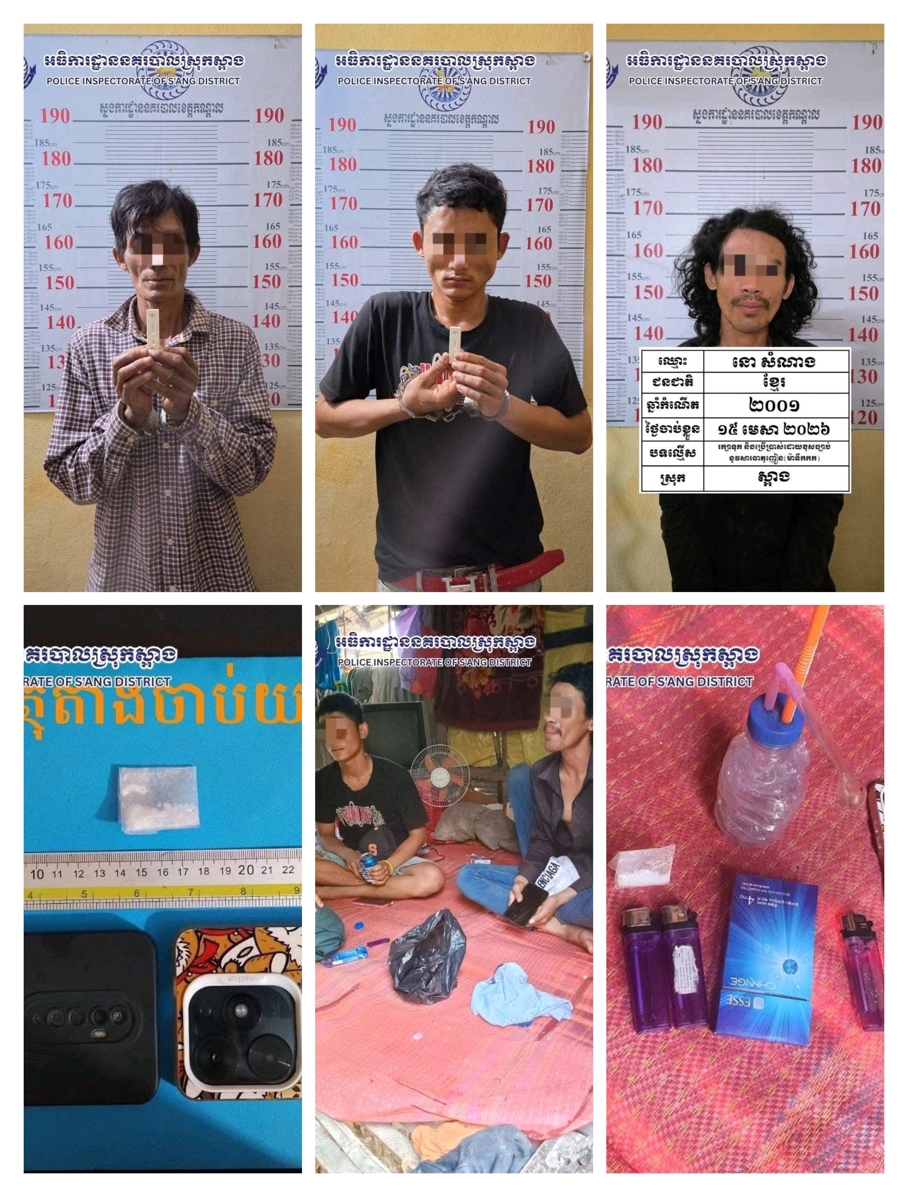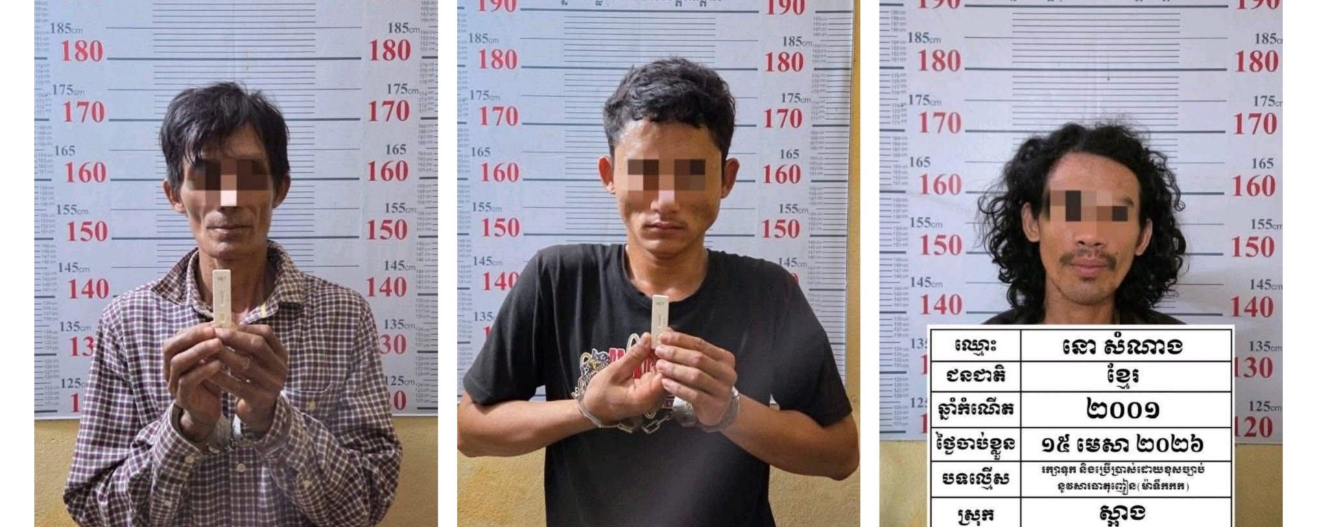 ខេត្តកណ្តាល៖ កម្លាំងនគរបាលស្រុកស្អាង បានបើកប្រតិបត្តិការបង្ក្រាបករណីគ្រឿងញៀន ដោយឃាត់ខ្លួនជនសង្ស័យចំនួន ៣នាក់ ពាក់ព័ន្ធនឹងការរក្សាទុក និងប្រើប្រាស់ដោយខុសច្បាប់នូវសារធាតុញៀនប្រភេទម៉ាទឹកកក។
