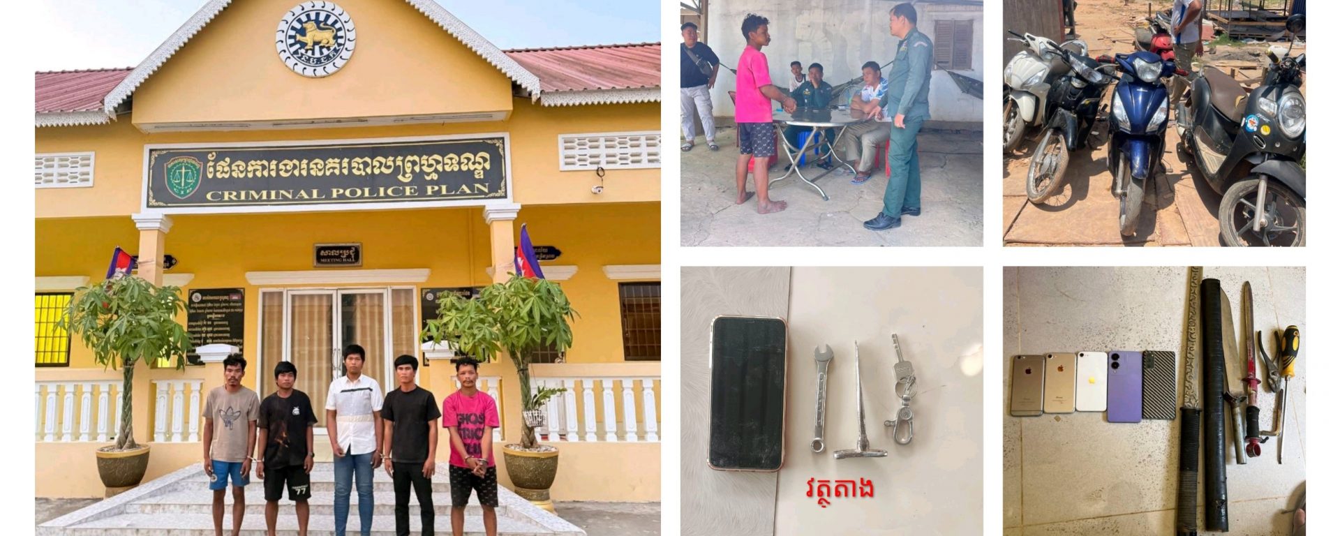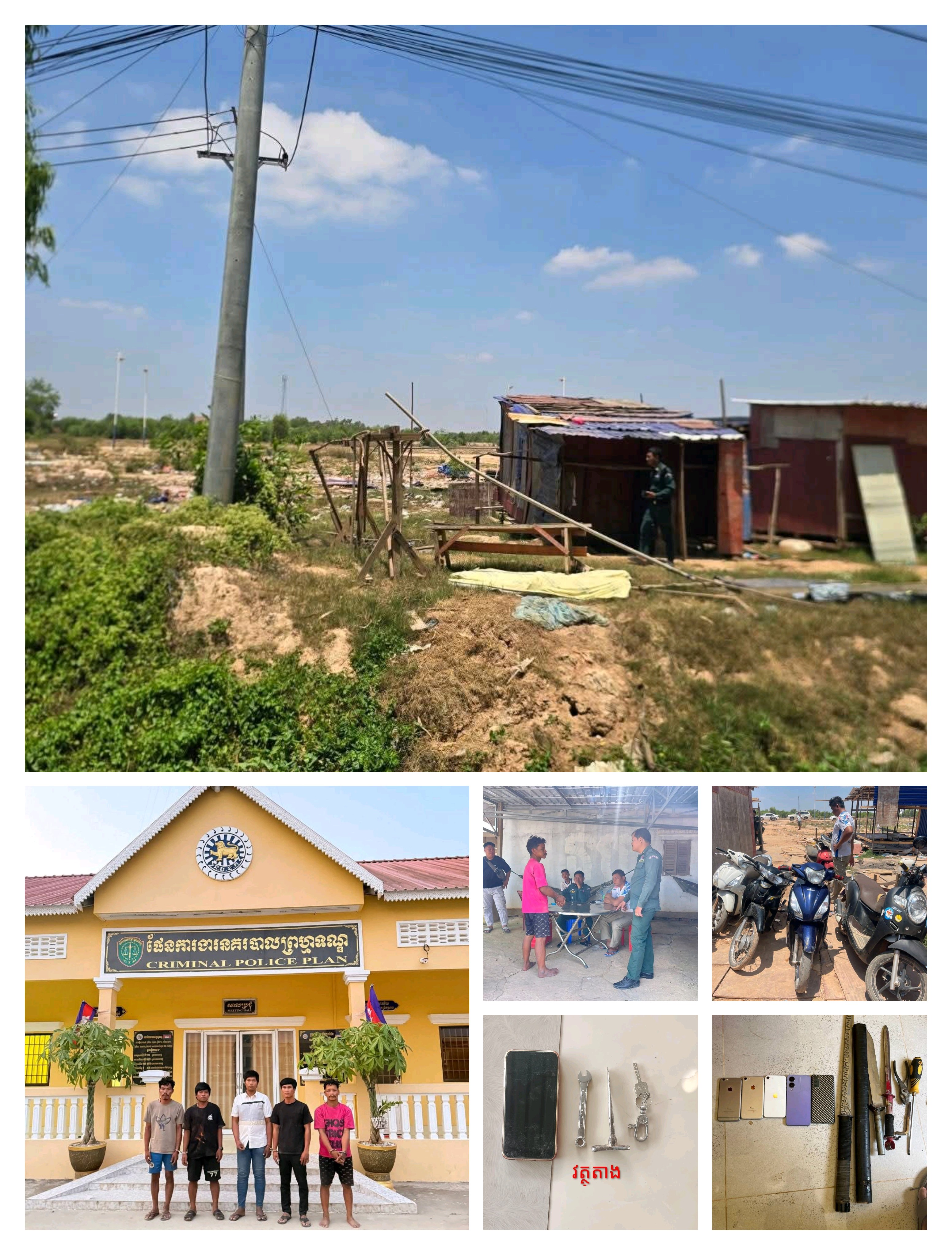 ដោយទទួលបទបញ្ជាពីលោកអធិការនគរបាលក្រុង កម្លាំងជំនាញ (ព្រហ្មទណ្ឌ-គ្រឿងញៀន) សហការជាមួយប៉ុស្តិ៍នគរបាលបាវិត ប៉ុស្តិ៍នគរបាលរដ្ឋបាលប្រាសាទ ប្រើវិធានការជំនាញ បាននាំជនងសង្ស័យខាងលេី ទៅបង្ហាញទីតាំង ដែលបក្ខពួកខ្លួនស្នាក់នៅ គឺនៅចំណុច រោងស្នាក់នៅរបស់កម្មករសំណង់ ក្នុងបរិវេណក្រុមហ៊ុន អេអាយ ស្ថិតក្នុងភូមិកណ្តាល សង្កាត់ប្រាសាទ ក្រុងបាវិត ភ្លាមនោះក្រុមជនសង្ស័យក៏បានរត់គេចខ្លួនចូលព្រៃ តែសមត្ថកិច្ចកិច្ចយើងប្រដេញ និងនិងឃាត់ខ្លួនជនសង្ស័យជាបន្តបន្ទាប់ បានចំនួន០៤នាក់ទៀត រួមវត្ថុតាងសម្ភារ:ម៉ូតូ08គ្រឿង ដាវសាំម៉ូរ៉ៃ២ដើម (នៅក្នុងរោងកម្មករ)ដែកអក្សរ T ចំនួន០១,ដែកអក្សរ L ចំនួន០១ .ដង្កាប់ ១ តួណាវីស ១ចាប់យកនៅកន្លែងរោងស្នាក់នៅ)