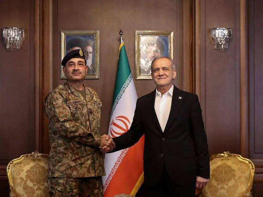 អន្តរជាតិ ៖ ទូរទស្សន៍ជាតិអ៊ីរ៉ង់បានផ្សាយដំណឹងនៅថ្ងៃទី ១៧ ខែមេសាថា លោក Masoud Pezeshkian ប្រធានាធិបតីអ៊ីរ៉ង់ បានជួបសន្ទនាជាមួយលោក Asim Munir សេនាធិការកងទ័ពជើងគោកប៉ាគីស្ថានដែលជាភាគីសម្របសម្រួលនៅទីក្រុងតេអេរ៉ង់ដោយលើកឡើងថា អ៊ីរ់ង់ខិតខំសម្រេចសន្តិភាពនិងស្ថិរភាពក្នុងតំបន់ជាអចិន្ត្រៃយ៍ ប្រតិបត្តិការយោធាចំពោះមូលដ្ឋានយោធាអាមេរិកប្រចាំនៅតំបន់មជ្ឈិមបូព៌ាគឺក្នុងគោលបំណងការពារ។
