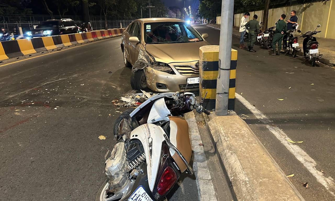 បើតាមប្រភពពីកន្លែងកើតហេតុបានឲ្យដឹងថា នៅមុនពេលកើតហេតុគេឃើញបុរសម្នាក់បានបើករថយន្តម៉ាកកាមរីហាយប្រ៊ីដពណ៌ស្ករ១គ្រឿងពាក់ ផ្លាកលេខ ភ្នំពេញ 2Q-8833 ចុះពីលេីស្ពានអាកាស៧មករាក្នុងទិសដៅពីលិចទៅកើតក្នុងល្បឿនលឿន ខណៈពេលបើកចុះមកដលចុងស្ពានក៏រេចង្កូតទៅប៉ះខឿនបណ្តាលឲ្យបែកកង់មួយចំហៀងខាងស្តាំ ហើយងាកកន្ទុយរថយន្តមកកណ្តាលផ្លូវស្របពេលមានម៉ូតូ១គ្រឿងម៉ាក HONDA SCOOPY ពណ៌សពាក់ផ្លាកលេខភ្នំពេញ 1AV-7491ជិះដោយបុរសម្នាក់បើកមកពីក្រោយស្របគ្នាជាន់ហ្រ្វ័ងមិនទាន់ក៏ជ្រុលទៅបុករថយន្តពីក្រោយចំចំហៀងខាងស្តាំបន្ថែមបណ្តាលឲ្យបុរសជាម្ចាស់ម៉ូតូរងរបួសធ្ងន់ត្រូវបានបញ្ជូនទៅមន្ទីរពេទ្យ ចំណែកអ្នកបើករថយន្តបង្កហេតុបានរត់គេចខ្លួនបាត់ស្រមោល។