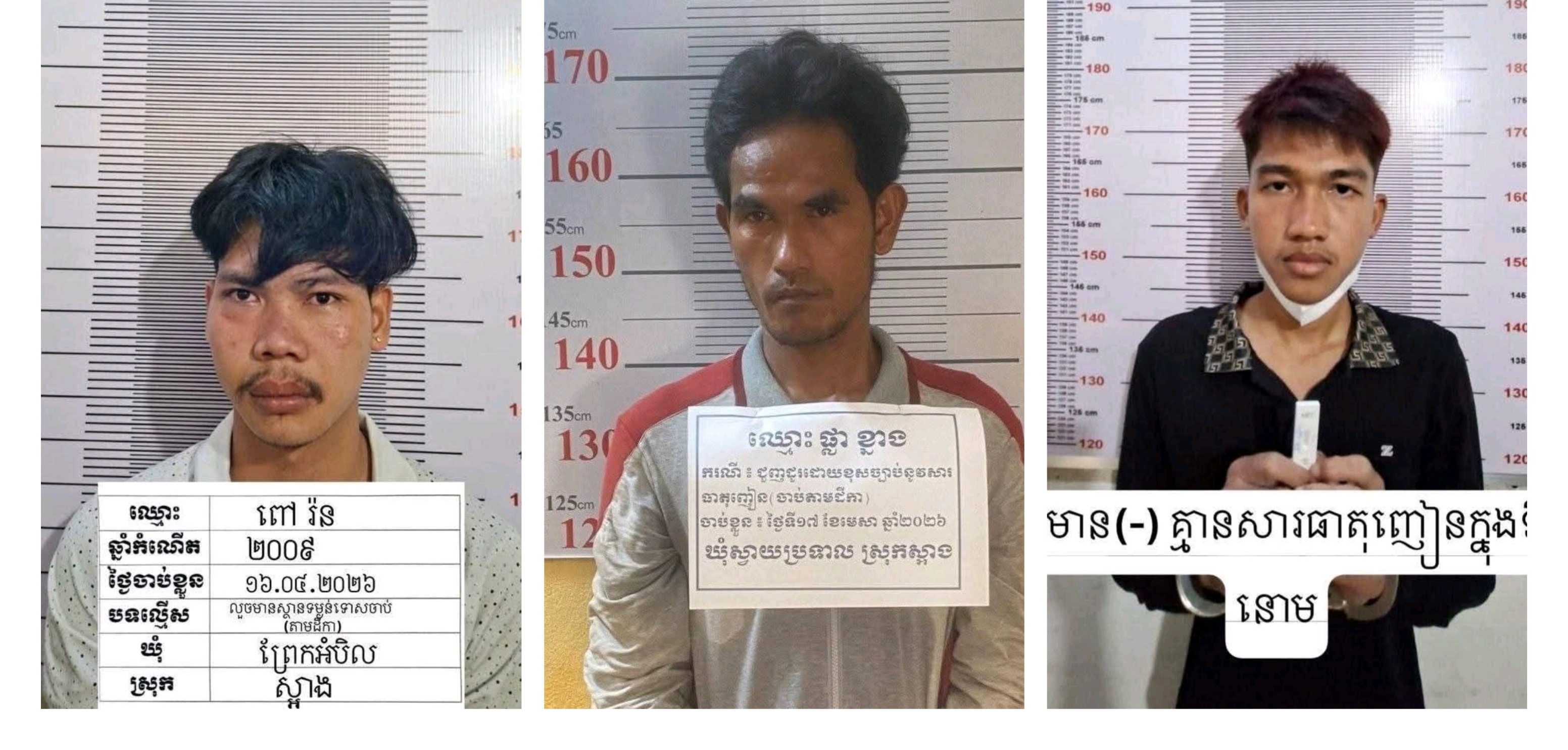 ខេត្តកណ្តាល÷ កម្លាំងនគរបាលស្រុកស្អាង ខេត្តកណ្ដាល បានបើកប្រតិបត្តិការស្រាវជ្រាវ និងចុះអនុវត្តដីកាបង្គាប់ឲ្យចាប់ខ្លួនរបស់សាលាដំបូងខេត្តកណ្ដាល ដោយឃាត់ខ្លួនជនត្រូវចោទបានចំនួន ៣នាក់ ជាបន្តបន្ទាប់គ្នាក្នុងករណី ២ផ្សេងគ្នា កាលពីថ្ងៃទី១៦ និងថ្ងៃទី១៧ មេសា ២០២៦។