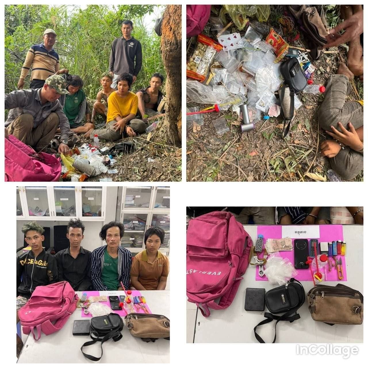 ប្រភពដដែលបន្តថា មុនពេលឈានដល់ការបង្ក្រាប កម្លាំងសមត្ថកិច្ចទទួលបានសេចក្ដីរាយការណ៍ពីប្រជាពលរដ្ឋថា មានមុខសញ្ញាកំពុងធ្វើសកម្មភាពលក់ចែកចាយថ្នាំញៀននៅចំណុចព្រៃខាងលើ។ ភ្លាមៗនោះ កម្លាំងជំនាញស្រុកបានសហការជាមួយប៉ុស្តិ៍រដ្ឋបាល ចុះទៅដល់ទីតាំងក៏ប្រទះឃើញជនសង្ស័យកំពុងប្រមូលផ្ដុំគ្នា។ គ្រាន់តែឃើញសមត្ថកិច្ចភ្លាម ក្រុមជនសង្ស័យបានបំបែកហ្វូងរត់គេចខ្លួន តែសមត្ថកិច្ចបានដេញតាមឃាត់ខ្លួនបាន ៤នាក់ ខណៈ ៤នាក់ទៀតបានរត់គេចខ្លួនបាត់ ដោយបន្សល់ទុកវត្ថុតាងនៅកន្លែងកើតហេតុ។