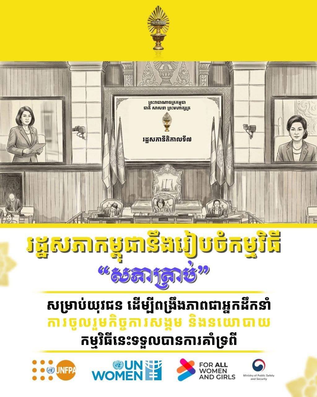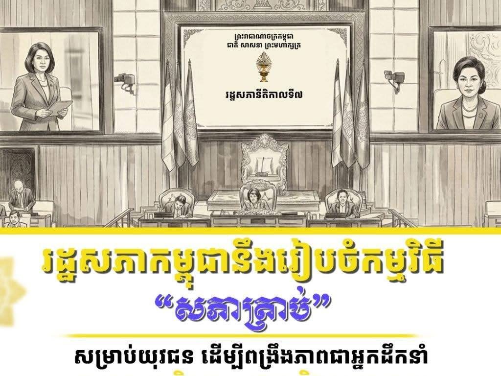 ភ្នំពេញ ៖ នៅថ្ងៃស្អែកនេះ វិមានរដ្ឋសភានឹងបើកទ្វារស្វាគមន៍យុវតីឆ្នើមប្រមាណ ៨០រូប មកពីទូទាំងប្រទេស ដើម្បីចូលរួមក្នុងកម្មវិធី «សភាត្រាប់ (Mock Parliament)»។