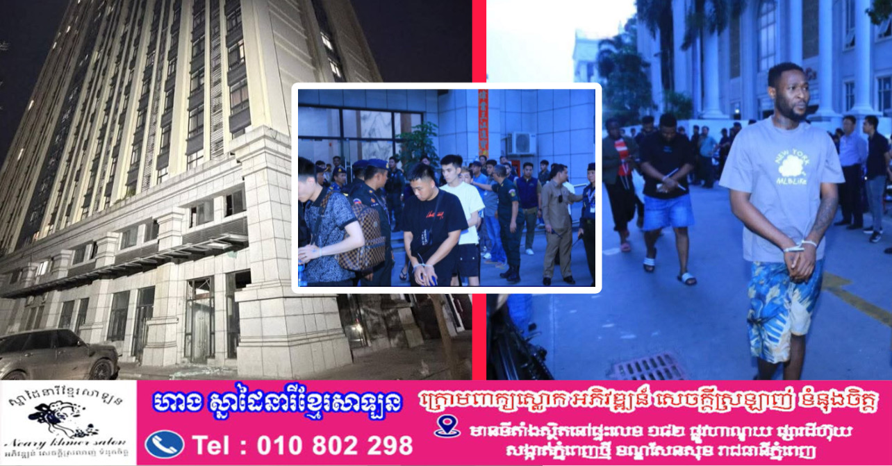 ភ្នំពេញ ៖ កម្លាំងគណៈបញ្ជាការឯកភាពរាជធានីភ្នំពេញ ក្រោមការបញ្ជាការផ្ទាល់ពីលោក ឃួង ស្រេង អភិបាលរាជធានីភ្នំពេញ និងជាប្រធានគណៈបញ្ជាការឯកភាពរាជធានីភ្នំពេញ និងឧត្តមសេនីយ៍ឯក ជួន ណារិន្ទ អគ្គស្នងការរង និងជាស្នងការនគរបាលរាជធានីភ្នំពេញ និងមានការសម្របសម្រួបពីព្រះរាជអាជ្ញា បានបើកប្រតិបត្តិការចុះបង្ក្រាបបទល្មើសឆបោកតាមប្រព័ន្ធបច្ចេកវិទ្យា (Online Scames) និងគ្រឿងញៀន នៅអគារខុនដូរ ZHUOYUFENG ដោយឃាត់ខ្លួនជនបរទេសចំនួន ៥៥នាក់។