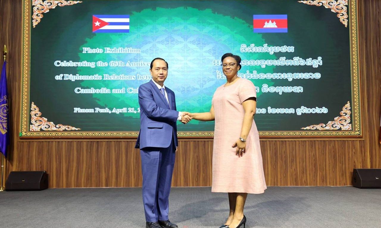 ភ្នំពេញ ៖ លោកស្រី និន សាផុន ប្រធានគណៈកម្មការទី៩ នៃរដ្ឋសភា និងជាប្រធានក្រុមមិត្តរដ្ឋសភាកម្ពុជា-គុយបា នារសៀលថ្ងៃទី២១ ខែមេសា ឆ្នាំ២០២៦ បានអញ្ជើញជាតំណាងដ៏ខ្ពង់ខ្ពស់ សម្តេចមហារដ្ឋសភាធិការធិបតី ឃួន សុដារី ប្រធានរដ្ឋសភា ក្នុងពិធីបើក “ពិព័រណ៍រូបថតអបអរសាទរខួបលើកទី៦៥ នៃទំនាក់ទំនងការទូតកម្ពុជា-គុយបា” នៅសាលចតុម្មុខមង្គលនៃក្រសួងព័ត៌មាន។