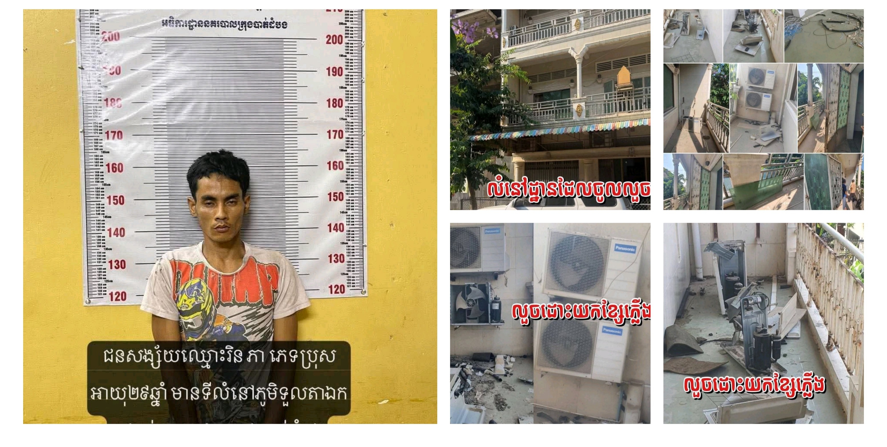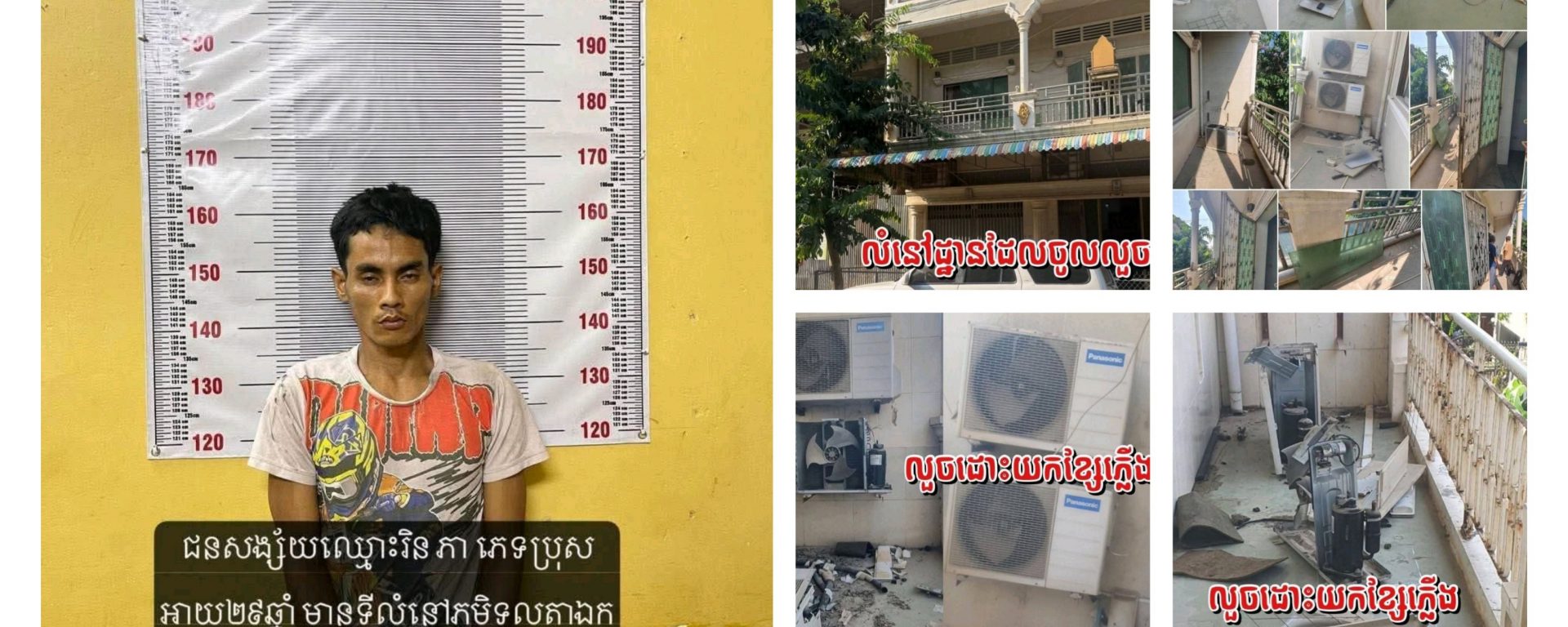 ជនសង័្សយត្រូវបានឃាត់ខ្លួនឈ្មោះ រិន ភា ភេទប្រុស អាយុ២៩ឆ្នាំ រស់នៅក្នុងស្ថានីយ៍រថភ្លើង ស្ថិតក្នុងសង្កាត់ទួលតាឯក ក្រុងបាត់ដំបង។ ជនសង័្សយបានឆ្លើយសារភាពថា ដោយសំគាល់ឃើញថា លំនៅដ្ឋានមួយកន្លែងខាងលើមិនមានម្ចាស់រស់នៅ រូបគេក៏បានធ្វើ សកម្មភាពឡើងតាមដើមឈើខាងមុខផ្ទះចូលទៅគាស់ទ្វារផ្ទះនិងកាត់យកខ្សែភ្លើងទុយោស្ពាន់ ពីកន្ទុយម៉ាស៊ីនត្រជាក់ក្នុងលំនៅដ្ឋាននាយប់ថ្ងៃទី២១ ខែមេសា ឆ្នាំ ២០២៦ ដើម្បីយកស្ពាន់ខាងក្នុងលក់ ។