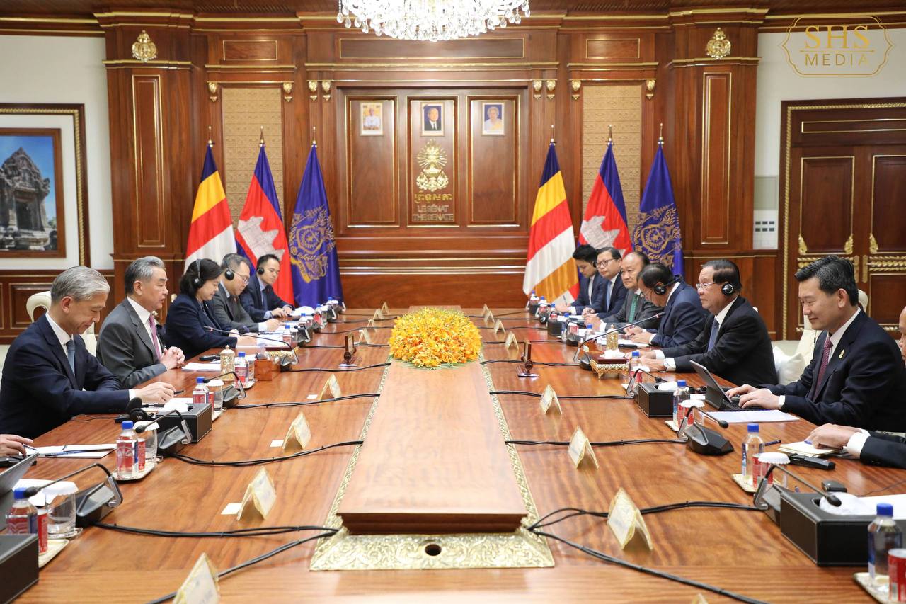 ភ្នំពេញ៖ សម្ដេចអគ្គមហាសេនាបតីតេជោ ហ៊ុន សែន ប្រមុខរដ្ឋស្ដីទីកម្ពុជា នៅព្រឹកថ្ងៃទី ២៣ ខែមេសា ឆ្នាំ២០២៦នេះ បានទទួលជួបជាមួយ លោក វ៉ាង យី រដ្ឋមន្ត្រីការបរទេសចិន នៅវិមានសាមគ្គីភាពនៃព្រឹទ្ធសភា រាជធានីភ្នំពេញ។ ជាជំនួបចុងក្រោយមុនលោក បញ្ចប់ដំណើរទស្សនកិច្ច និងចូលរួមកិច្ចសន្ទនានៅកម្ពុជា។