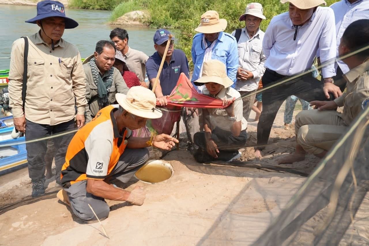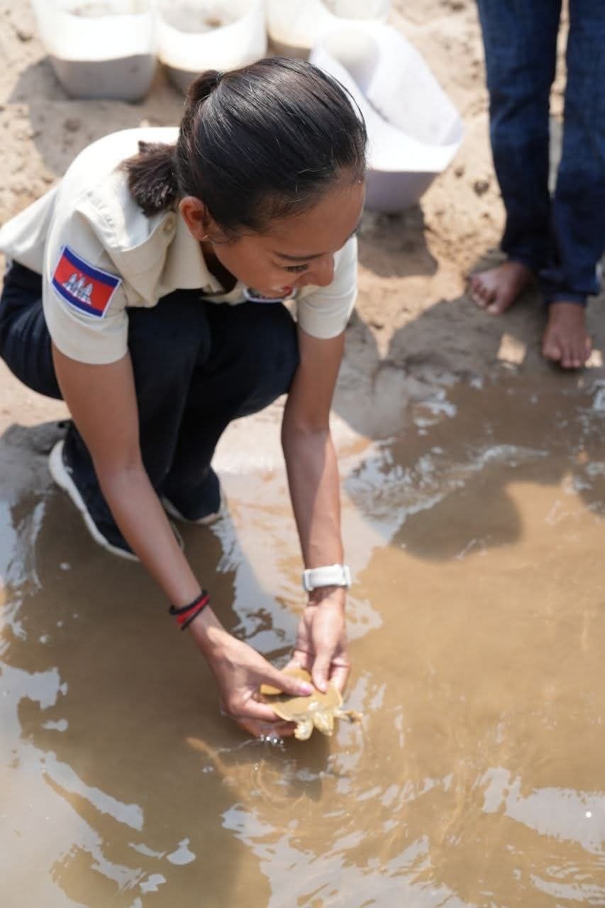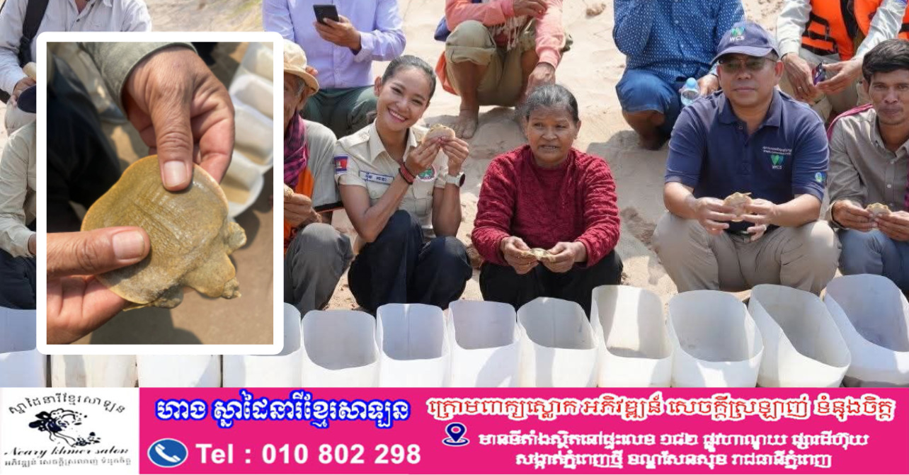 ខេត្តក្រចេះ÷នៅព្រឹកថ្ងៃទី២២ ខែមេសា ឆ្នាំ២០២៦ កញ្ញា អ៊ឹម រចនា អនុរដ្ឋលេខាធិការក្រសួងកសិកម្ម រុក្ខាប្រមាញ់ និងនេសាទ បានអញ្ជើញដឹកនាំក្រុមការងារជំនាញអភិរក្សជលផល និងមន្រ្តីពាក់ព័ន្ធ លែងកន្ធាយក្បាលកង្កែប ចំនួន ១៥ក្បាល ចូលដែនទឹកធម្មជាតិ និងចុះពិនិត្យទីតាំងសំបុកកន្ធាយ ពង្រឹងការគ្រប់គ្រងសត្វកន្ធាយក្បាលកង្កែប នៅភូមិអូរក្រសាំង ឃុំបឹងចារ ស្រុកសំបូរ ក្នុងខេត្តក្រចេះ។