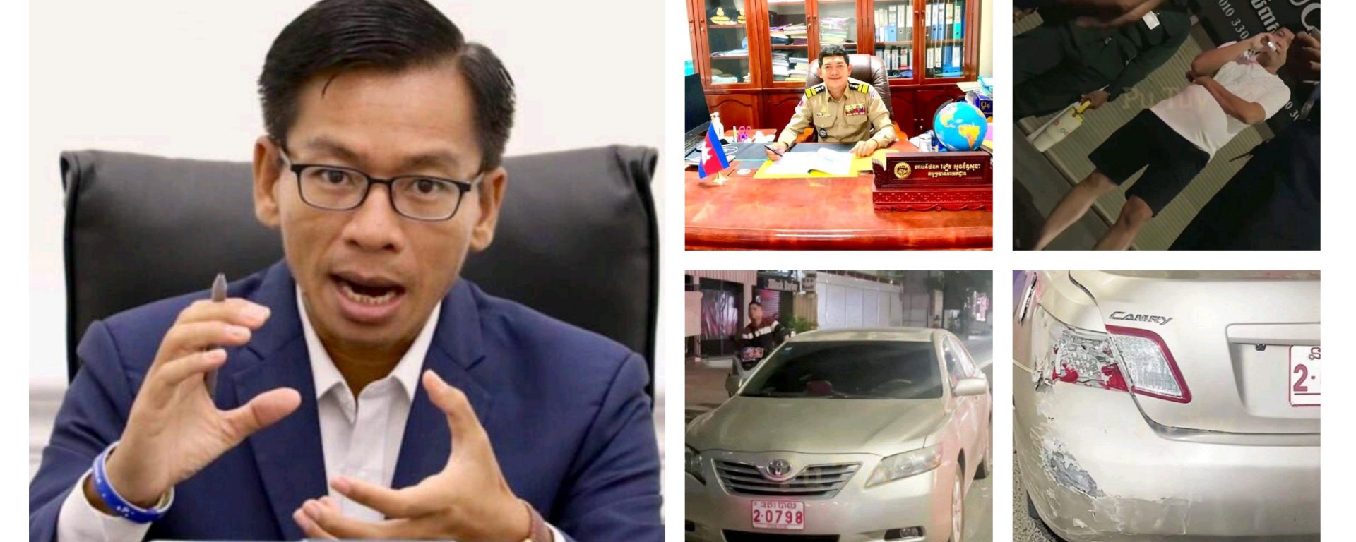 សូមជម្រាបថា នគរបាលពាក់ស័ក្ដិ៥ម្នាក់ មានតួនាទីជាអនុប្រធាននាយកដ្ឋាន ក្នុងអង្គភាពចំណុះក្រសួងមហាផ្ទៃ បានរងការរិះគន់យ៉ាងខ្លាំងពីមហាជននៅលើបណ្ដាញសង្គម ដែលប្រើប្រាស់ពាក្យសម្ដីគំរាមចាប់វាយខ្នោះពលរដ្ឋ ក្រោយជិះឡានប៉ះឡានរបស់ខ្លួនពាក់ផ្លាកលេខនគរបាលដែលចតនៅលើចិញ្ចើមផ្លូវ។ ហេតុការណ៍នេះ បានកើតឡើងនាថ្ងៃទី២៣ ខែមេសា ឆ្នាំ២០២៦ លើផ្លូវជាតិលេខ១ ស្ថិតក្នុងសង្កាត់និរោធ ខណ្ឌច្បារអំពៅ រាជធានីភ្នំពេញ។