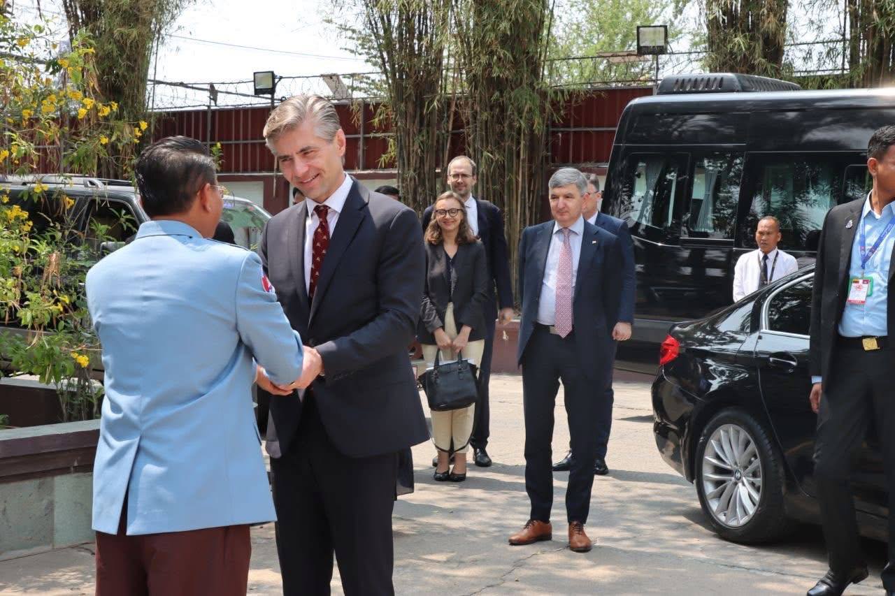 ភ្នំពេញ៖ នៅទីបញ្ជាការស៊ីម៉ាក់ភ្នំពេញ លោក ហេង រតនា ប្រធានអង្គភាពស៉ីម៉ាក់ នៅថ្ងៃសៅរ៍ ៩កើត ខែពិសាខ ឆ្នាំមមី អដ្ឋស័ក ព.ស២៥៦៩ ត្រូវនឹងថ្ងៃទី២៥ ខែមេសា ឆ្នាំ២០២៦នេះ បានទទួលបដិសណ្ឋារកិច្ច និងពិភាក្សាការងារជាមួយ លោក Kęstutis Budrys រដ្ឋមន្ត្រីក្រសួងការបរទេសនៃសាធារណរដ្ឋលីទុយអានី ដើម្បីស្វែងយល់ពីវិស័យសកម្មភាពមីននៅកម្ពុជា និងកិច្ចប្រតបត្តិការរបស់អង្គភាពCMAC ព្រមទាំងការផ្លាស់ប្តូរទស្សនៈលើការជំរុញកិច្ចសហប្រតិបត្តិការអន្តរជាតិលើការងារការហ្វឹកហ្វឺនសកម្មភាពមីនដែលអង្គភាពស៊ីម៉ាក់បានផ្តល់ការហ្វឹកហ្វឺនដល់ប្រទេសដែលរងផលប៉ះពាល់ដោយសារសំណល់យុទ្ធភណ្ឌសង្រ្គាម ជាពិសេសបទពិសោធន៍ដែលបានបណ្តុះបណ្តាលជូនអ្នកជំនាញបោសសម្អាតមីន SESU មកពីប្រទេសអ៊ុយក្រែន។