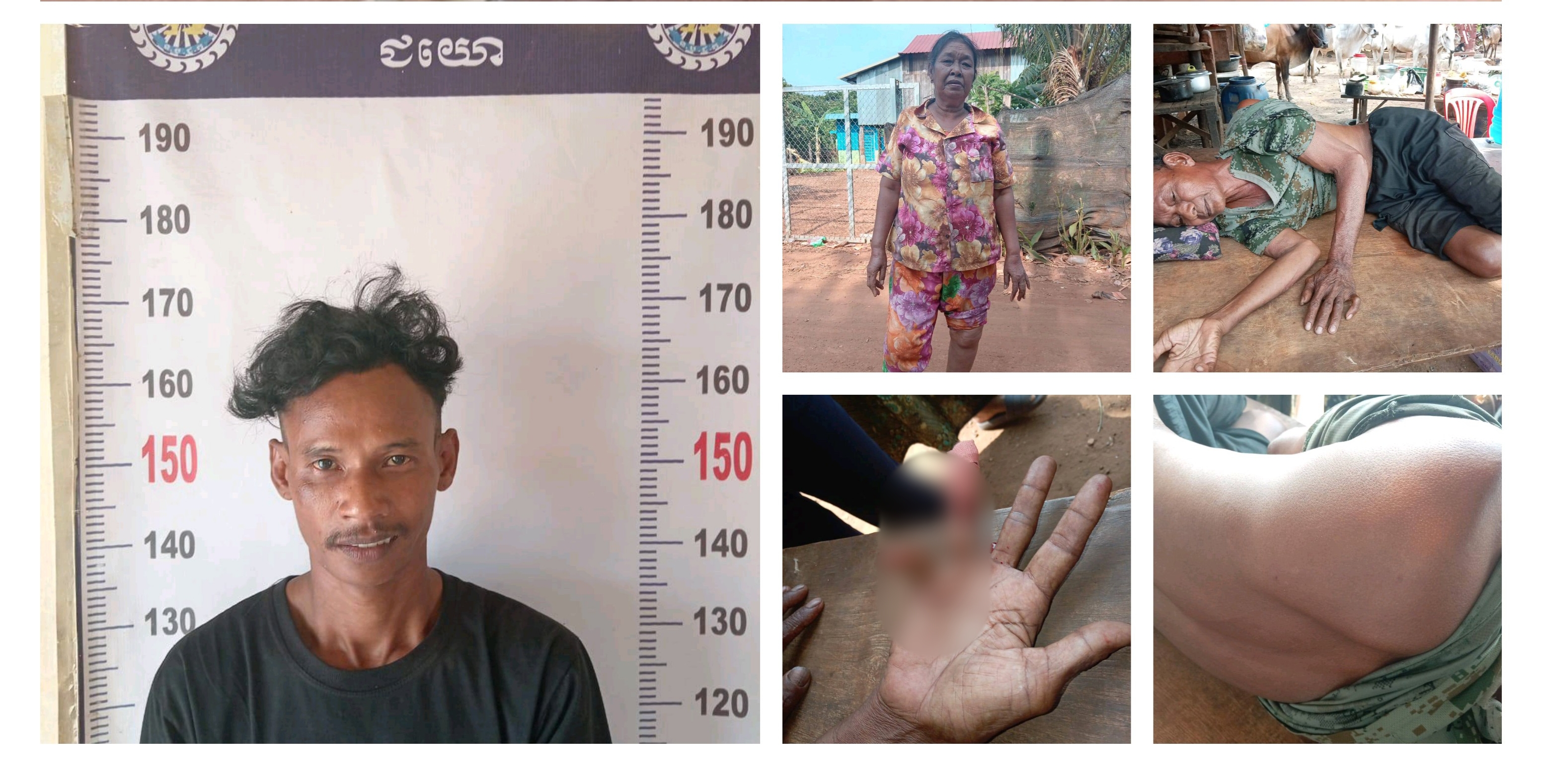 ១. ឪពុកឈ្មោះ សៅ ហិត ភេទ ប្រុស អាយុ៦៨ឆ្នាំ បណ្តាលឱ្យរបួសហើយស្មាខាងឆ្វេង និងមានស្នាមមុតម្រាមដៃនាងខាងស្តាំ