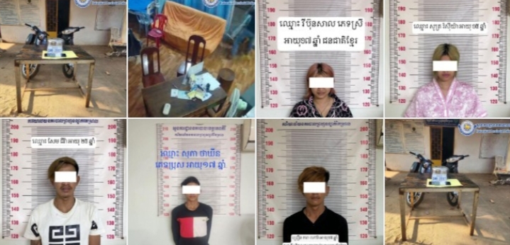 ១-ឈ្មោះ សុភា ថាឃីន ភេទប្រុស អាយុ ១៧ ឆ្នាំ ជន ជាតិ ខ្មែរ មុខរបរមិនពិតប្រាកដ មានទីលំនៅបច្ចុប្បន្នភូមិ១ ឃុំត្រពាំងច្រេស ស្រុកកូនមុំ ខេត្តរតនគិរី, ២- ឈ្មោះ ជ្រឿន តារ៉ា ភេទប្រុស អាយុ ១៥ ឆ្នាំ ជនជាតិ ខ្មែរ មុខរបរមិនពិតប្រាកដ មានទីលំនៅបច្ចុប្បន្នភូមិភ្នំស្វាយសង្កាត់បឹងកន្សែង ក្រុងបានលុង,៣-ឈ្មោះ សូត្រ រ៉ស៊ីយ៉ា ភេទស្រីអាយុ ១៥ ឆ្នាំ ជនជាតិ ខ្មែរ-ឥស្លាម មុខរបរមិនពិតប្រាកដ មានទីលំនៅបច្ចុប្បន្នភូមិថ្មី សង្កាត់ឡាបានសៀក ក្រុងបានលុង ខេត្តរតនគិរី, ៤- ឈ្មោះ វី ប៊ុនសា ភេទស្រីអាយុ ១៥ ឆ្នាំ ជនជាតិ ខ្មែរ មុខរបរមិនពិតប្រាកដ មានទីលំនៅបច្ចុប្បន្នភូមិ២ សង្កាត់កាចាញ ក្រុងបានលុង ខេត្តរតនគិរី និង៥- ឈ្មោះ សែម ជីវ៉ា ភេទប្រុស អាយុ ២៥ឆ្នាំ ជនជាតិខ្មែរ មុខរបរមិនពិតប្រាកដ មានទីលំនៅបច្ចុប្បន្នភ្នំស្វាយ សង្កាត់បឹងកន្សែង ក្រុងបានលុង ខេត្តរតនគិរី និងបានដកហូតរក្សាទុកសម្ភារៈដែលជាវត្ថុតាងក្នុងការស្រាវជ្រាវរួមមាន៖ ទូរសព្ទដៃ ចំនួន៤គ្រឿង ម៉ូតូចំនួន០២គ្រឿ។