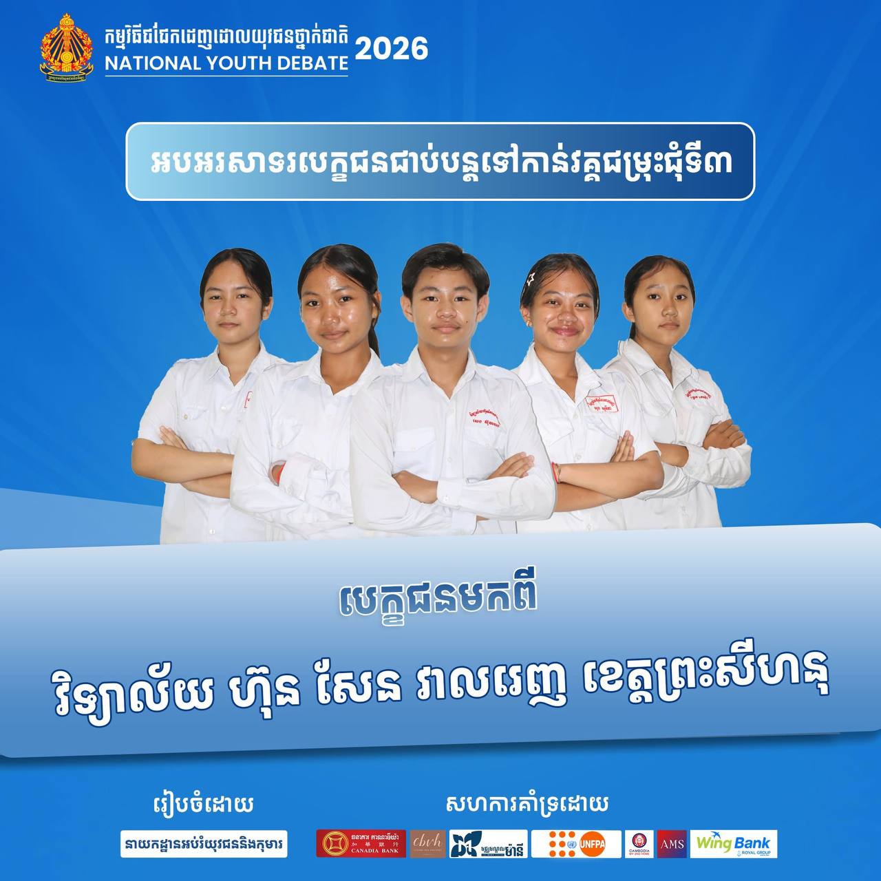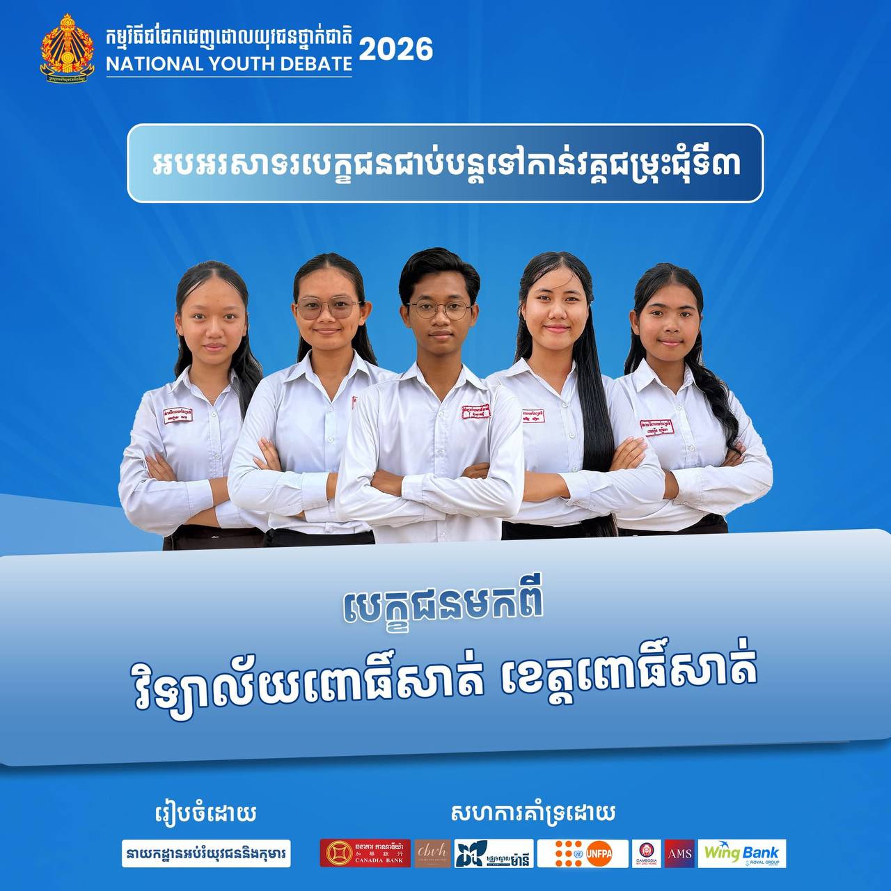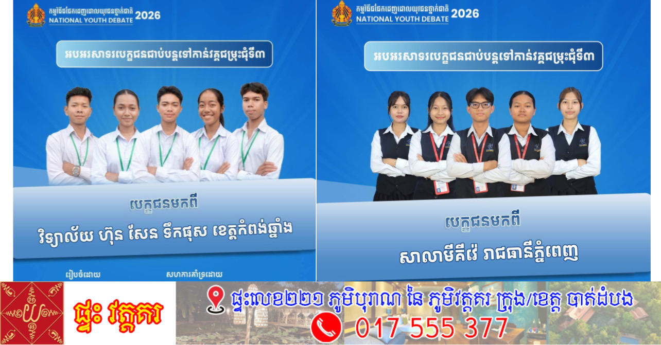 ភ្នំពេញ ៖ ក្រោយពីឆ្លងកាត់ការប្រកួតប្រជែងយ៉ាងតានតឹងក្នុងវគ្គជម្រុះជុំទី២ និងការវាយតម្លៃយ៉ាងម៉ត់ចត់ពីគណៈកម្មការ ប្រកបដោយសុក្រឹតភាព និងភាពយុត្តិធម៌ យើងបានរកឃើញនូវបេក្ខជនលេចធ្លោទាំង ៨ ក្រុម ដែលបានបង្ហាញសមត្ថភាពយ៉ាងឆ្នើមក្នុងការបកស្រាយ និងការត្រៀមខ្លួនបានយ៉ាងល្អប្រសើរ។