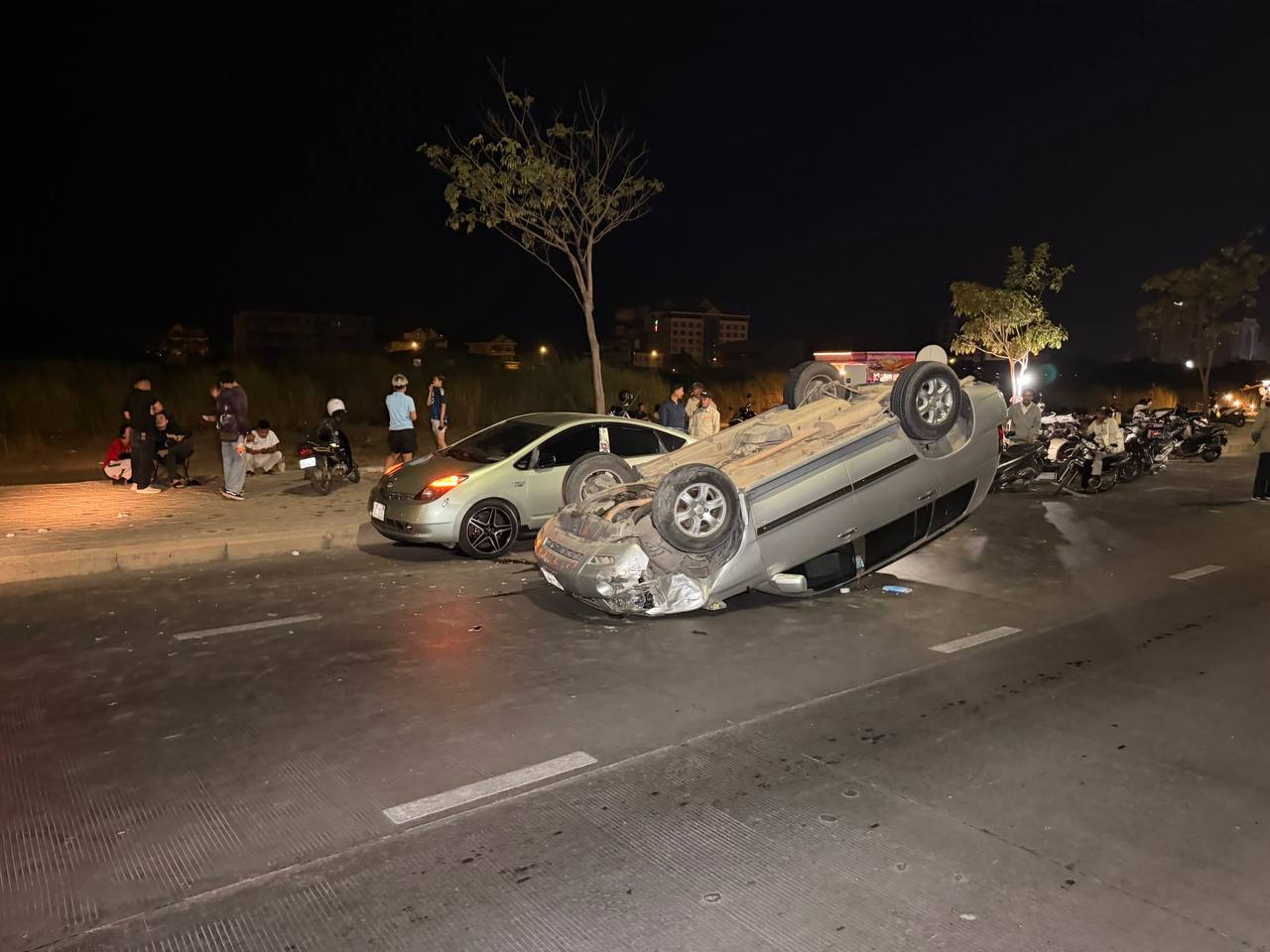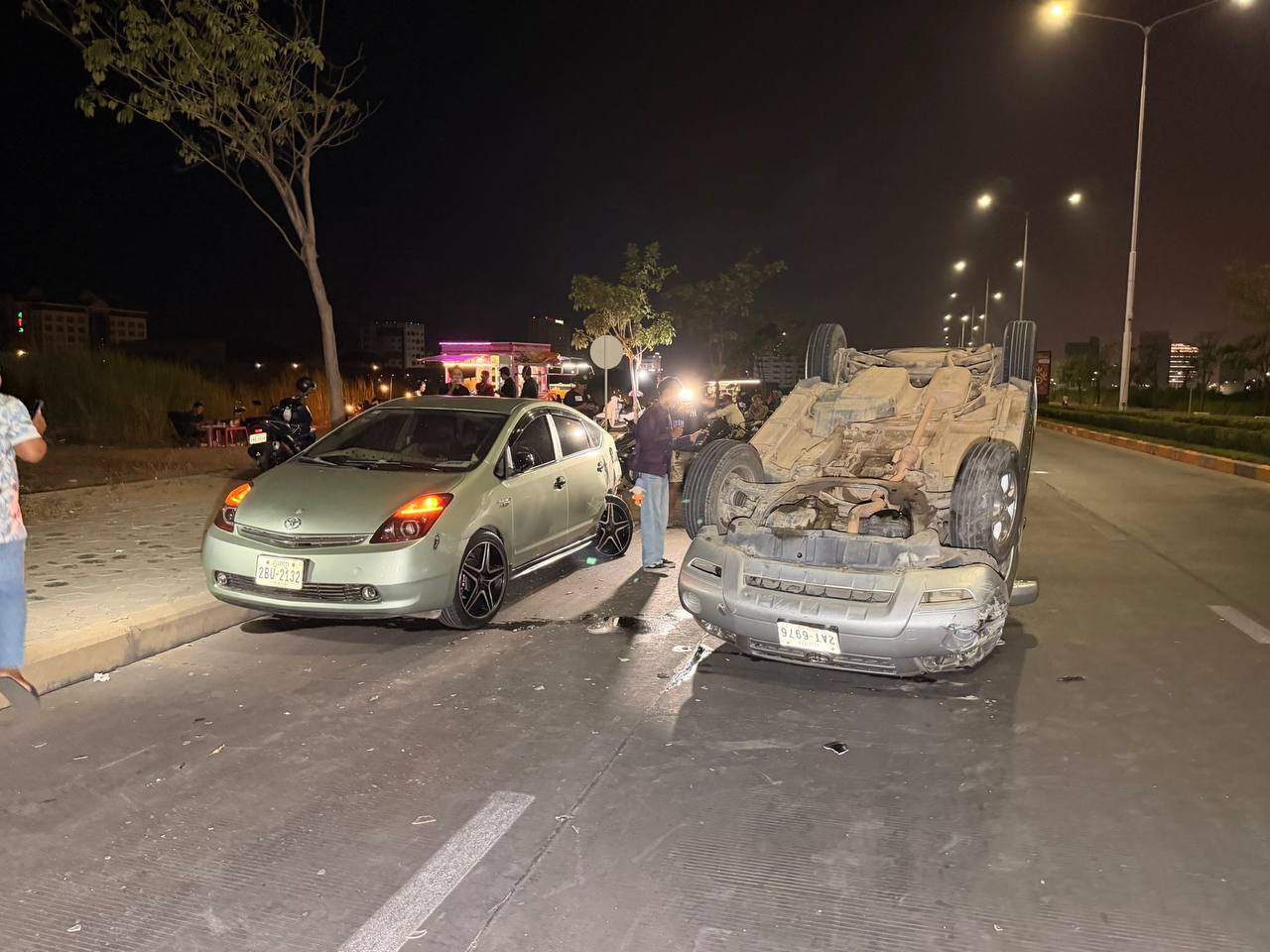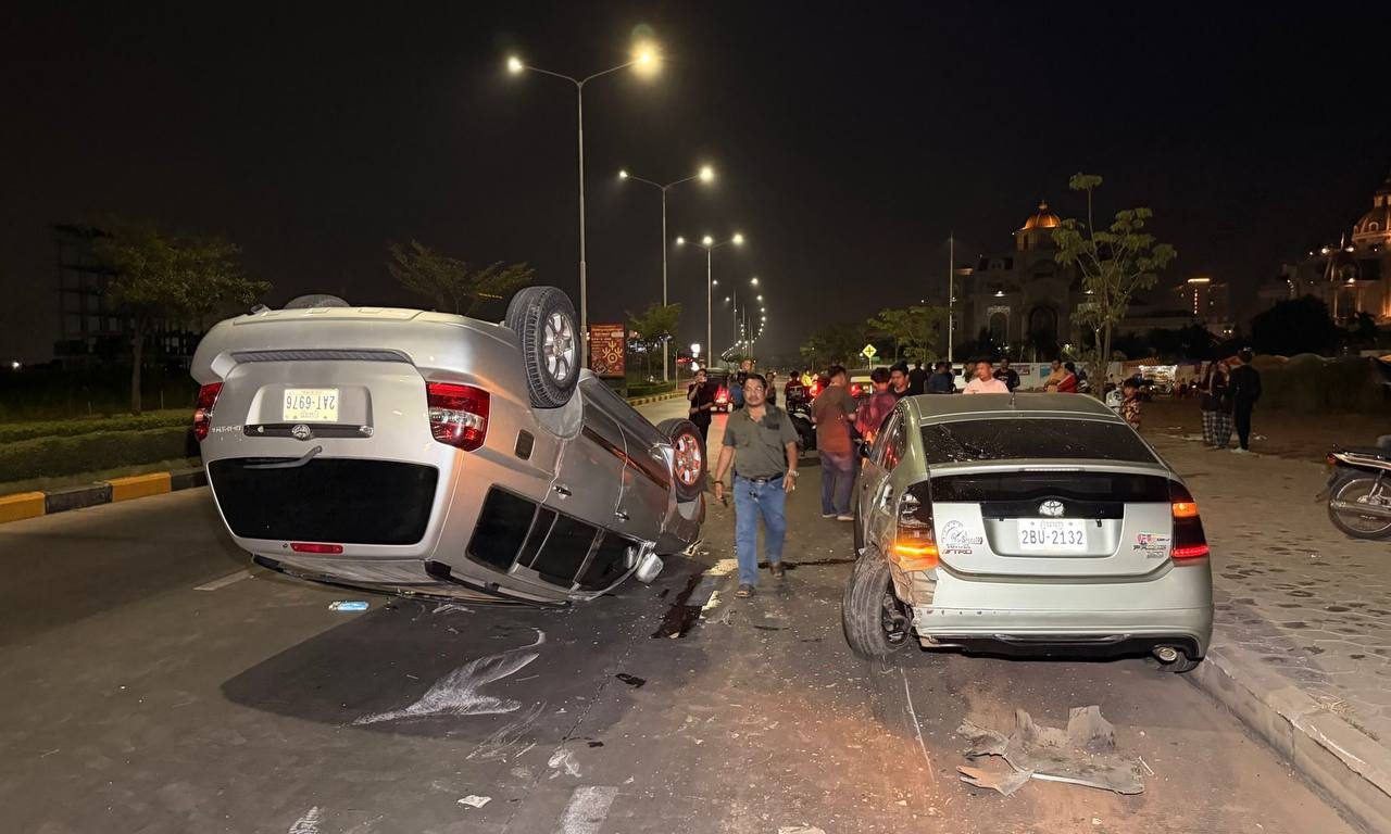 ភ្នំពេញ៖ បុរសម្នាក់បេីករថយន្ដ ហាយឡេនឌ័រលឿនជ្រុលបុករថយន្តព្រុសដែលឈបលេីដងផ្លូវបណ្តាលឱ្យរថយន្តហាយឡែនឌ័រក្រឡាប់ផ្ងារជេីង។