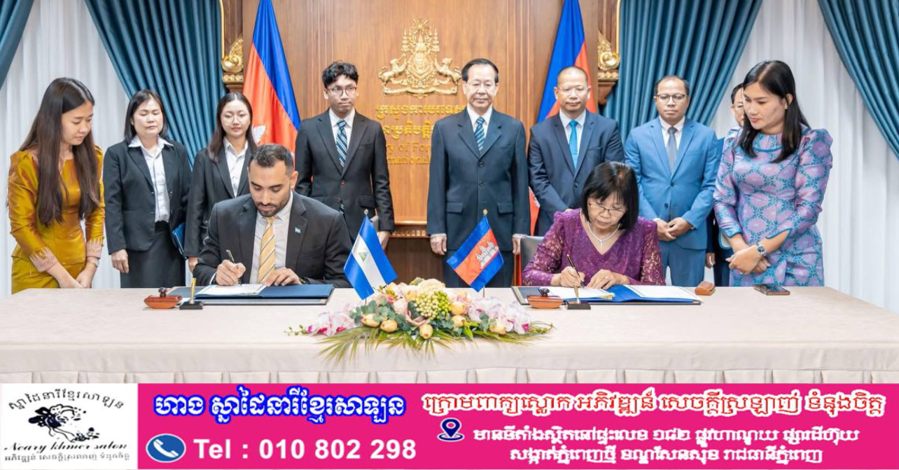 ភ្នំពេញ ៖ នៅថ្ងៃទី២៨ ខែមេសា ឆ្នាំ២០២៦ នៅទីស្តីការក្រសួងការបរទេស និងសហប្រតិបត្តិការអន្តរជាតិ លោកស្រី អ៊ាត សោភា រដ្ឋមន្ត្រីស្តីទីនៃក្រសួងការបរទេស និងសហប្រតិបត្តិការអន្តរជាតិ និងលោក Mario José Armengol Campos ឯកអគ្គរដ្ឋទូតវិសាមញ្ញ និងពេញសមត្ថភាពនៃសាធារណរដ្ឋនីការ៉ាហ្កាប្រចាំព្រះរាជាណាចក្រកម្ពុជា ដែលមាននិវេសនដ្ឋាននៅទីក្រុងហាណូយ បានចុះហត្ថលេខាលើឯកសារចំនួន ២ គឺ៖