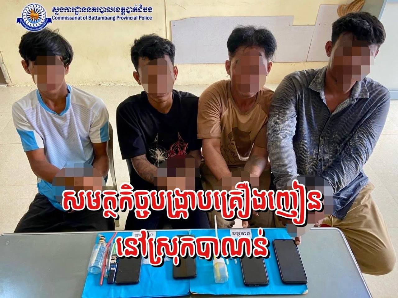 មុខសញ្ញាគ្រឿងញៀនចំនួន ០៤នាក់ត្រូវបានសមត្ថកិច្ចនគរបាលស្រុកបា ណន់បង្រ្កាបអនុវត្តតាមច្បាប់