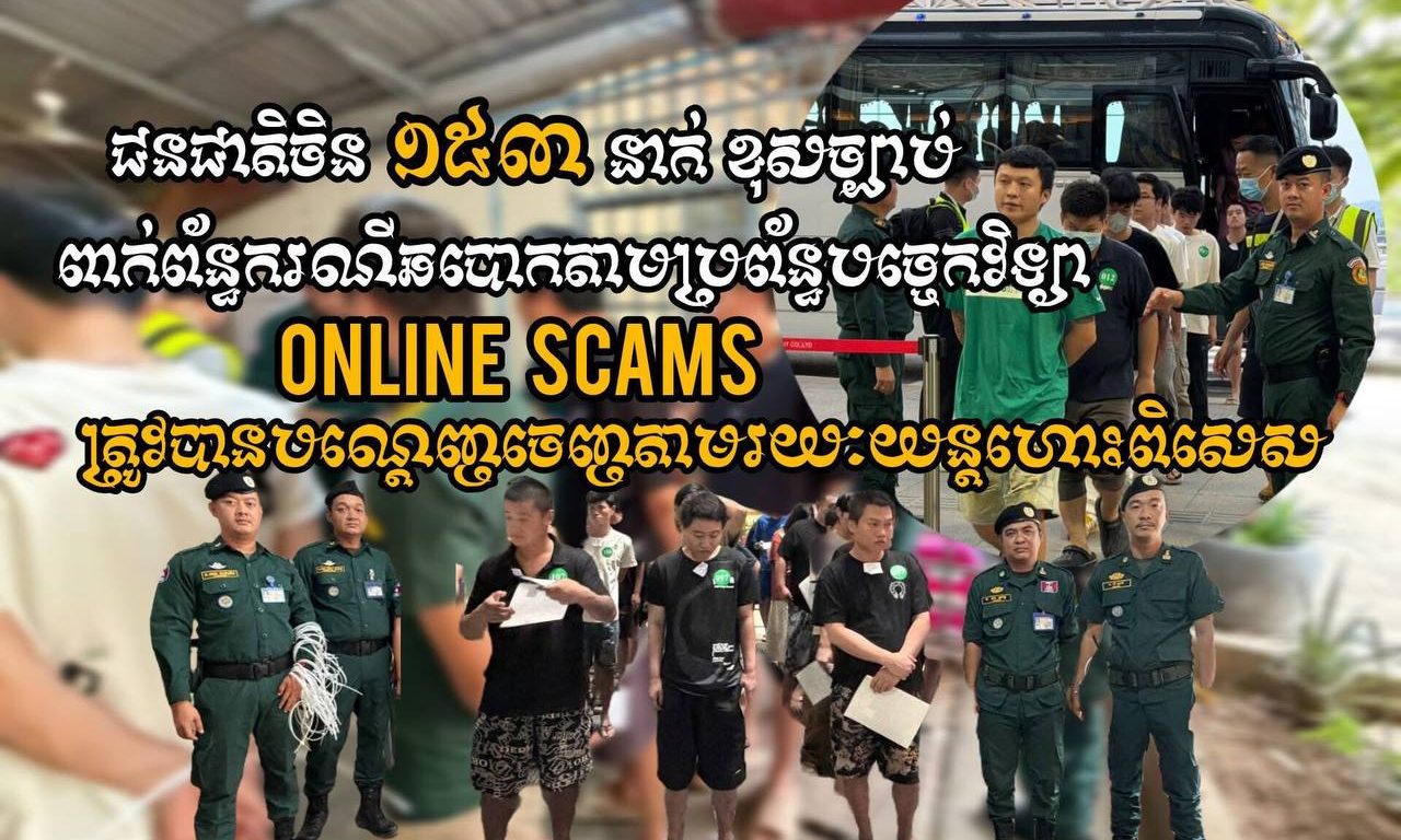 ភ្នំពេញ៖ អគ្គនាយកអន្តោប្រវេសន៍ នៃក្រសួងមហាផ្ទៃ បានឱ្យដឹងថា នៅយប់ថ្ងៃទី២៨ ឈានចូលថ្ងៃទី២៩ ខែមេសា ឆ្នាំ២០២៦ អនុវត្តតាមអនុសាសន៍ដ៏ខ្ពង់ខ្ពស់ របស់លោុំអភិសន្តិបណ្ឌិត ឧបនាយករដ្ឋមន្ត្រី រដ្ឋមន្ត្រីក្រសួងមហាផ្ទៃ លោកសន្តិបណ្ឌិត និងថ្នាក់ដឹកនាំក្រសួងមហាផ្ទៃ លោកឧត្តមសេនីយ៍ឯក សុខ វាសនា អគ្គនាយកអន្តោប្រវេសន៍ បានណែនាំឱ្យនាយកដ្ឋានស៊ើបអង្កេត និងអនុវត្តនីតិវិធី សហការជាមួយស្ថានទូតចិន បន្តធ្វើការបណ្តេញជនជាតិចិនសរុបចំនួន ១៥៣នាក់ ស្រី០២នាក់ ពាក់ព័ន្ធករណីឆបោកតាមប្រព័ន្ធអនឡាញ (Online Scams) និងករណីលួចស្នាក់នៅ ធ្វើការងារខុសច្បាប់ ត្រូវបានបណ្ដេញចេញតាមរយៈយន្តហោះពិសេស នៅប៉ុស្តិ៍នគរបាលច្រកទ្វារអាកាសយានដ្ឋានអន្តរជាតិសៀមរាបអង្គ។
