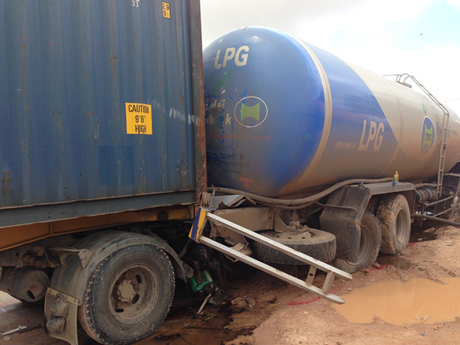 ដោយឡែកសមត្ថកិច្ចនៅកន្លែងកើតហេតុកាលពីព្រឹកម្សិលមិញប្រាប់ថា ករណីនេះ បានកើតឡើងកាលពីម៉ោងជាង២យប់រំលងឈានចូលថ្ងៃទី១៥ ខែតុលា ឆ្នាំ២០១៦ម្លេះ។ សមត្ថកិច្ចបន្តថា មុនពេលកើតហេតុគឺរថយន្តដឹកហ្គាសឈប់ហើយអ្នកបើកបរចុះទៅនោម ស្របពេលកំពុងនោមក៏មានរថយន្តកុងតឺន័រនោះបុកគេពីក្រោយតែម្តង។ សមត្ថកិច្ចបញ្ជាក់ ឲ្យដឹងទៀតថា រថយន្តទាំងពីរគ្រឿងបើកបរស្របទិសគ្នា ពីកើតទៅលិចលើកំណាត់ផ្លូវជាតិ លេខ១ លុះមកដល់ចំណុចភូមិខាងលើក៏កើតហេតុគ្រោះថ្នាក់ចរាចរណ៍នេះតែម្តង តែមិនបណ្តាលឲ្យរងរបួសដល់អាយុជីវិតឡើយ គ្រាន់តែរបួសតៃកុងឡានកុងតឺន័របន្តិចបន្តួច។