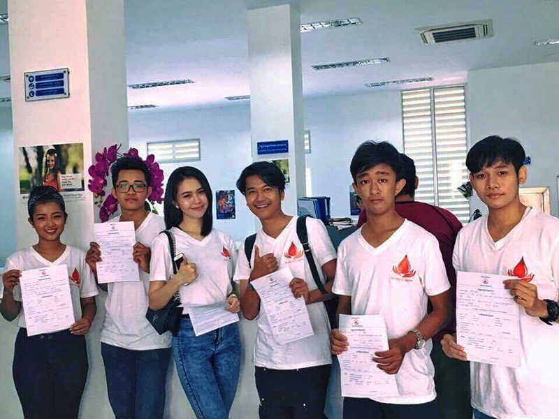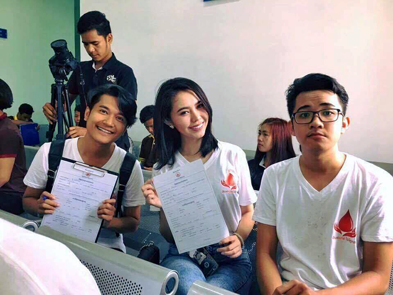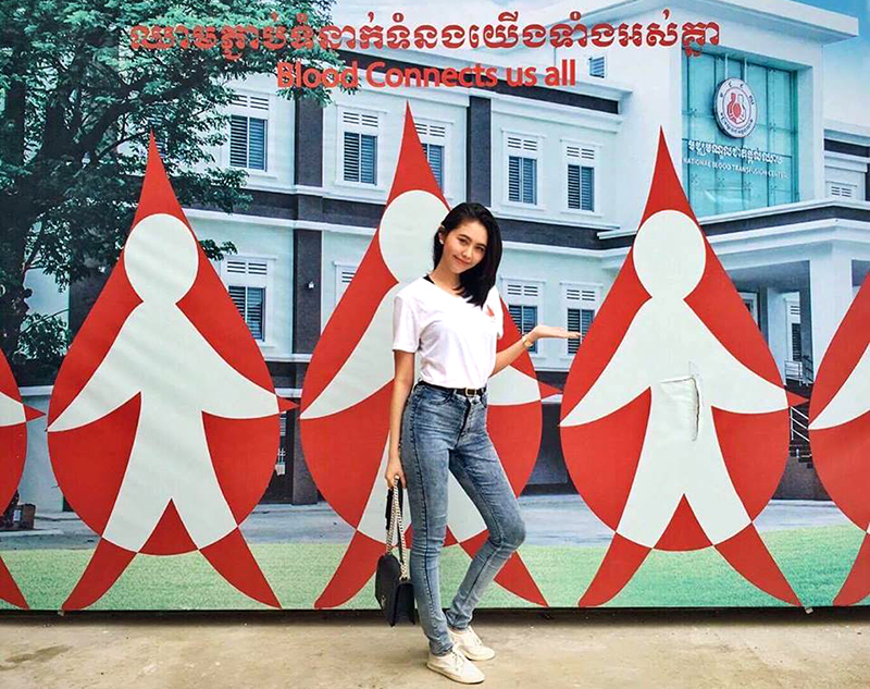 នៅថ្ងៃបរិច្ចាគឈាមកាលពីថ្មីៗនេះ តារាស្រីវ័យជាង២០ឆ្នាំរូបនេះ មិនមែនទៅបរិច្ចាគឈាមតែម្នាក់ឯងឡើយ ពោលគឺជាង១០នាក់ ហើយក្នុងនោះមានវត្តមានមិត្តភក្ដិ ដែលជាអ្នកសិល្បៈដូចគ្នាពីរនាក់ទៀតរួមមានកញ្ញា សន សុធី ពិធីការិនីនៅស្ថានីយទូរទស្សន៍បាយ័ន និងលោក គីម សុងឌីន ដែលជាអ្នកចម្រៀង Original ផងដែរ។ ប្អូនស្រីពៅរបស់ Freshy Boy លេខ១ឆ្នាំ២០១៦ លោក ថៃ នរៈពិទូ រូបនេះបានបំពេញក្រដាសបែបបទ និងឈរតម្រង់ជួរចាំបរិច្ចាគឈាម ក្រោយពេលតារារូបនេះហាក់ដូចជាមិនសូវចូលប្រឡូកក្នុងវិស័យសិល្បៈពេញលេញ បន្ទាប់វិលពីប្រទេសថៃនោះ។