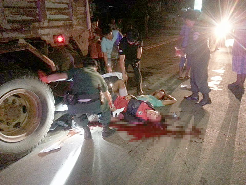 ខេត្តបន្ទាយមានជ័យ៖ យុវជន២នាក់ បានជិះម៉ូតូ១គ្រឿងឌុបគ្នាគេសង្ស័យបើកបរក្នុងស្ថានភាពស្រវឹង ហើយបើកជ្រុលបុកគូថរថយន្តពីក្រោយដឹកដីឈប់ចតស្ងៀមម្ចាស់ទៅទិញទឹកសុទ្ធ បណ្តាលឱ្យស្លាប់ម្នាក់និងម្នាក់ទៀតទទួលរងរបួសធ្ងន់ ។