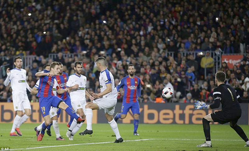 ខ្សែប្រយុទ្ធអន្តរជាតិទួរគី Arda Turan រកបាន៣គ្រាប់ម្នាក់ឯងហើយខ្សែប្រយុទ្ធ វ័យក្មេងអេស្ប៉ាញ Paco Alcacerអាចរកគ្រាប់បាល់ដំបូងរបស់ខ្លួនឲ្យក្រុមBarcelona ហើយចាប់តាំងពីផ្លាស់ពីក្រុម Valencia មក ។