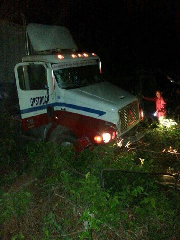 ករណីគ្រោះថ្នាក់នេះគេសង្ស័យថារថយន្តដឹកកុងតឺន័រអាចបើកជែងរថយន្តសាំយ៉ុងដឹកកម្មករតែជេងមិនផុតក៏វាក់ជាមួយរថយន្តបើកមកពីខាងមុខ ស្ថិតក្នុងស្ថានការណ៌បែបនេះតៃកុងភ័យក៏ទាញចង្កូតមកស្តាំវិញហើយក៏បុកគូថនិងរុញរថយន្តសាំយ៉ុងដឹកកម្មករពីក្រោយធ្លាក់ផ្កូវតែម្តងទៅ។